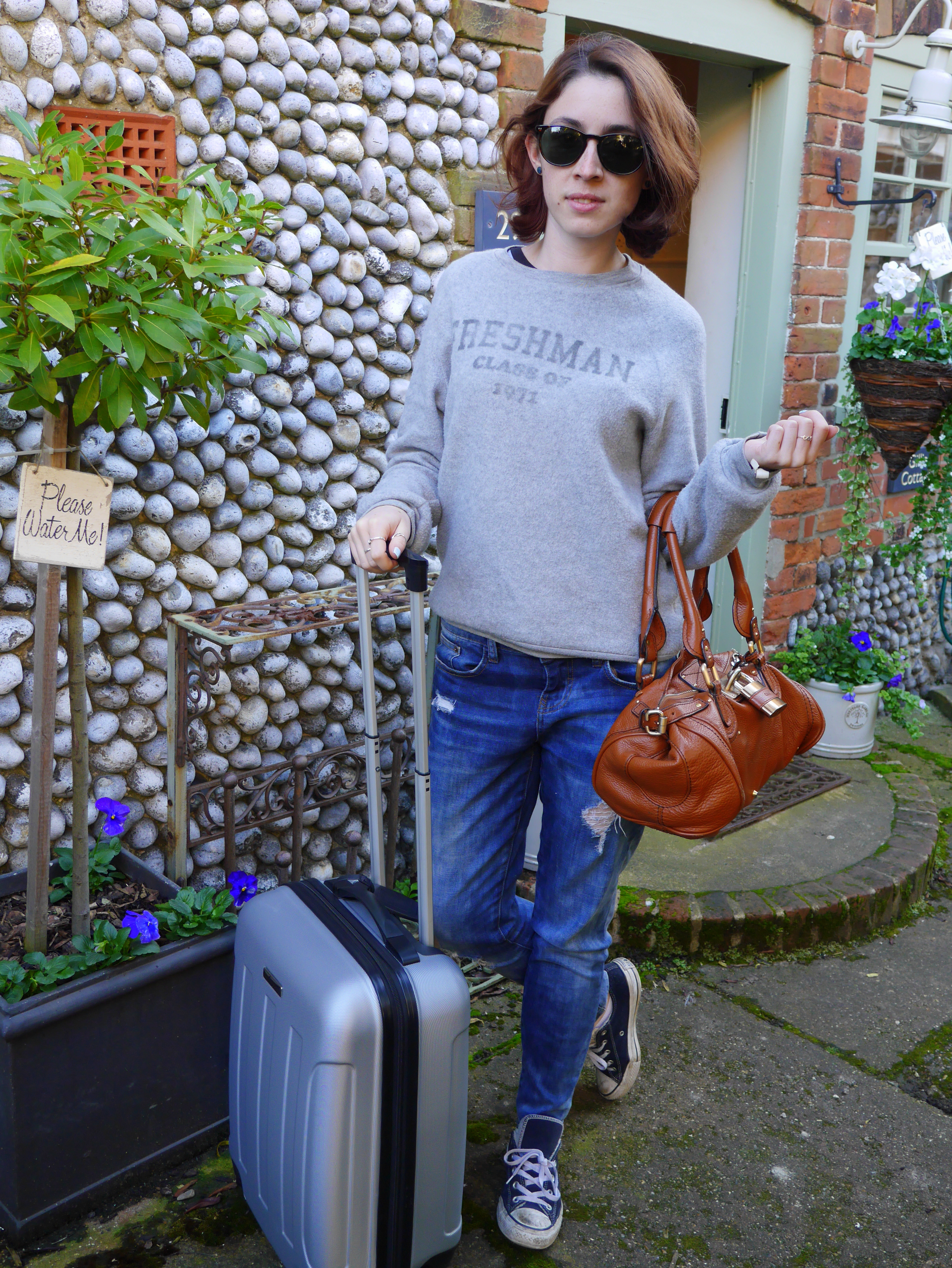 Sweatshirt – Topshop|Jeans – New Look|Shoes – Converse (similar)|Bag – Chloe|Sunglasses – Ralph Lauren.