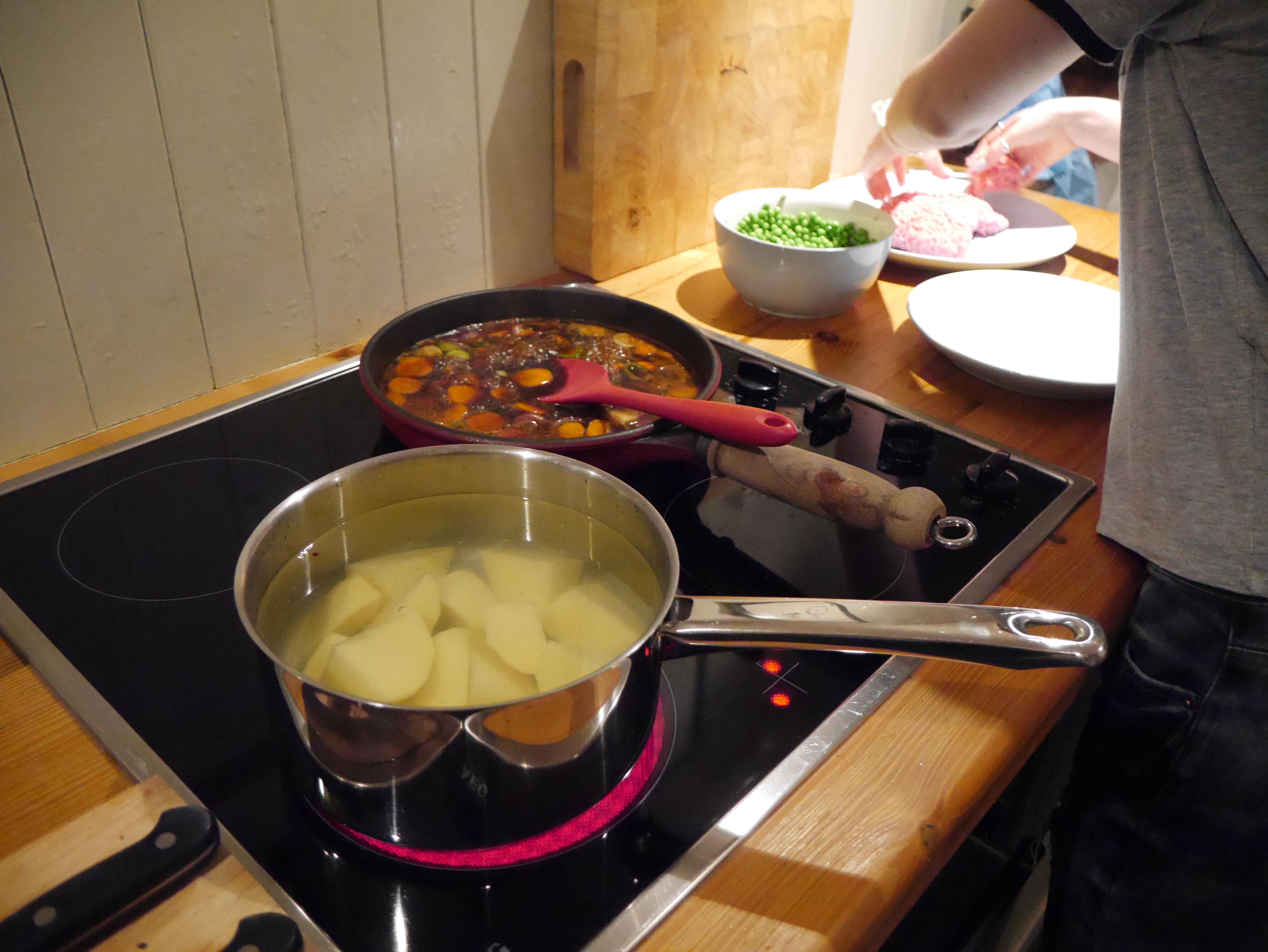 After the sun had set and left us in an orange glow we set off back for the cosy cottage where I was in charge of cooking up my speciality – the only one I have – Hunters Pie.