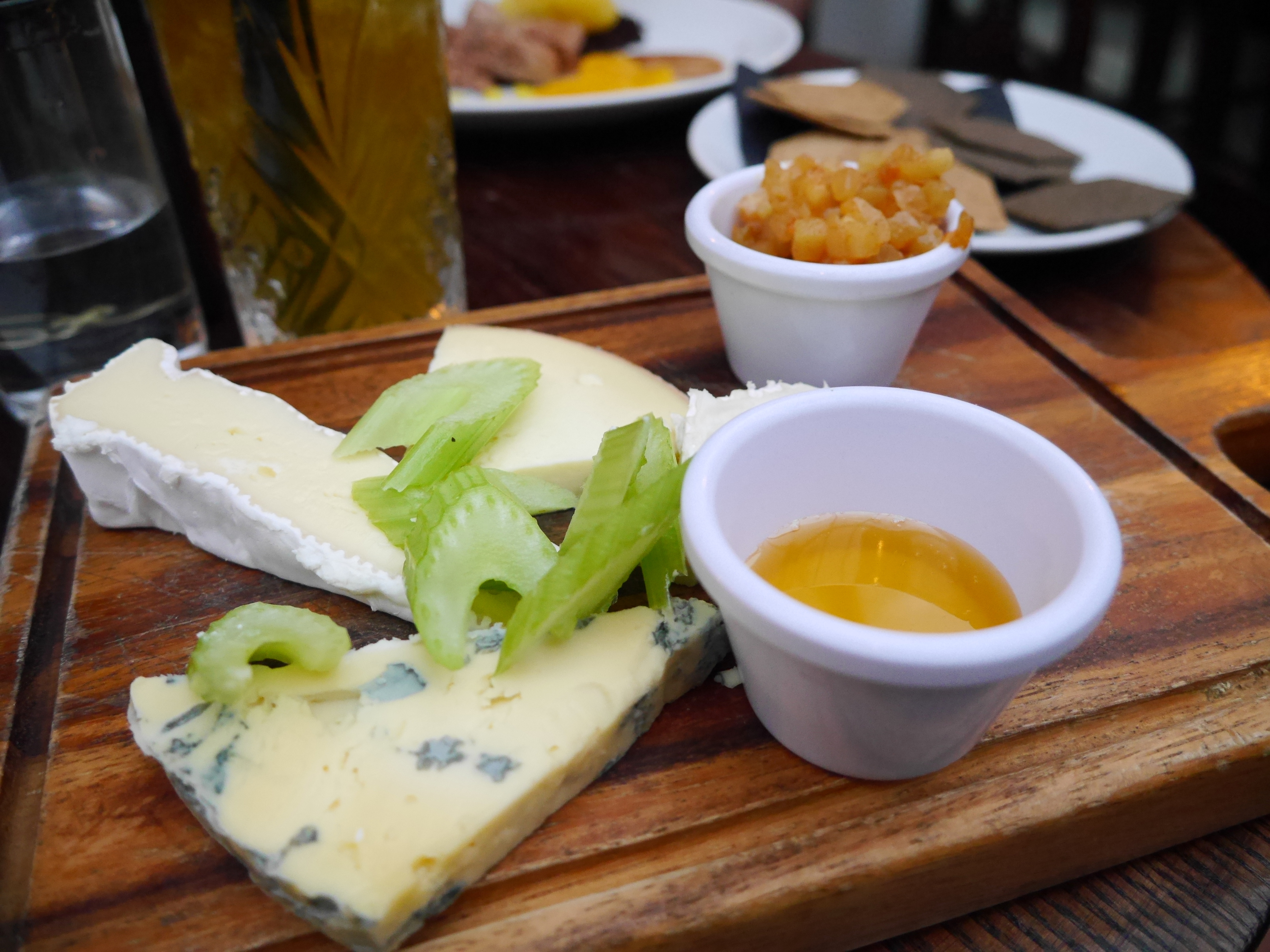 Almost full to the brim we managed to squeeze in some dessert; Cheeseboard for me, goats cheese with honey is my new favourite thing and Aerated Milk Chocolate with Orange Sorbet and Candid Peel for him.