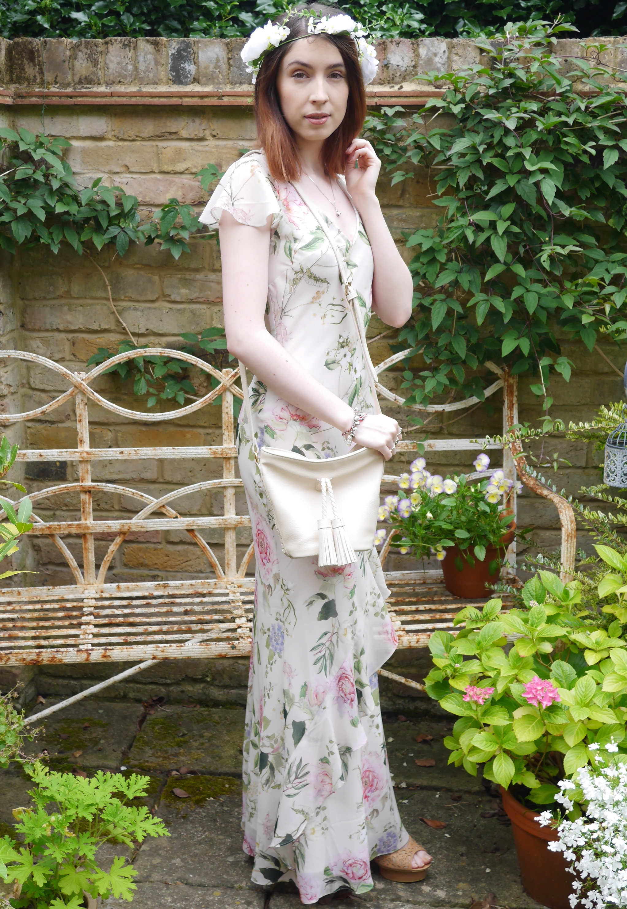Dress – Miss Selfridge|Shoes – Kurt Geiger|Garland – ASOS|Bag – Accessorize.