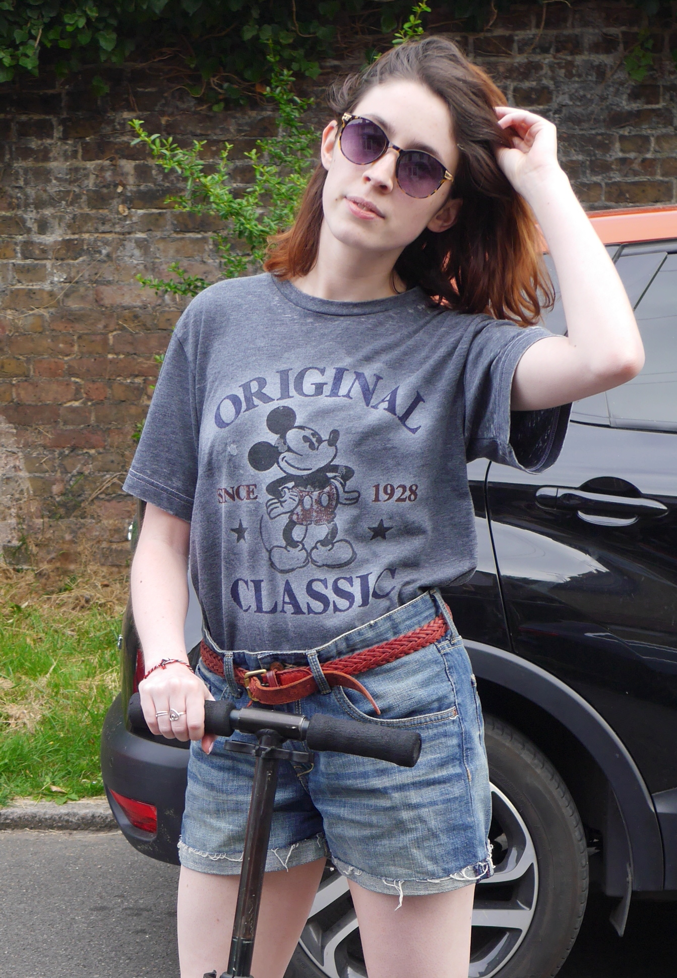 T-shirt – Disneyland(similar)|Shorts – H&M|Belt – Thrifted (similar)|Shoes – Converse via Office|Sunglasses – Thrifted (similar)