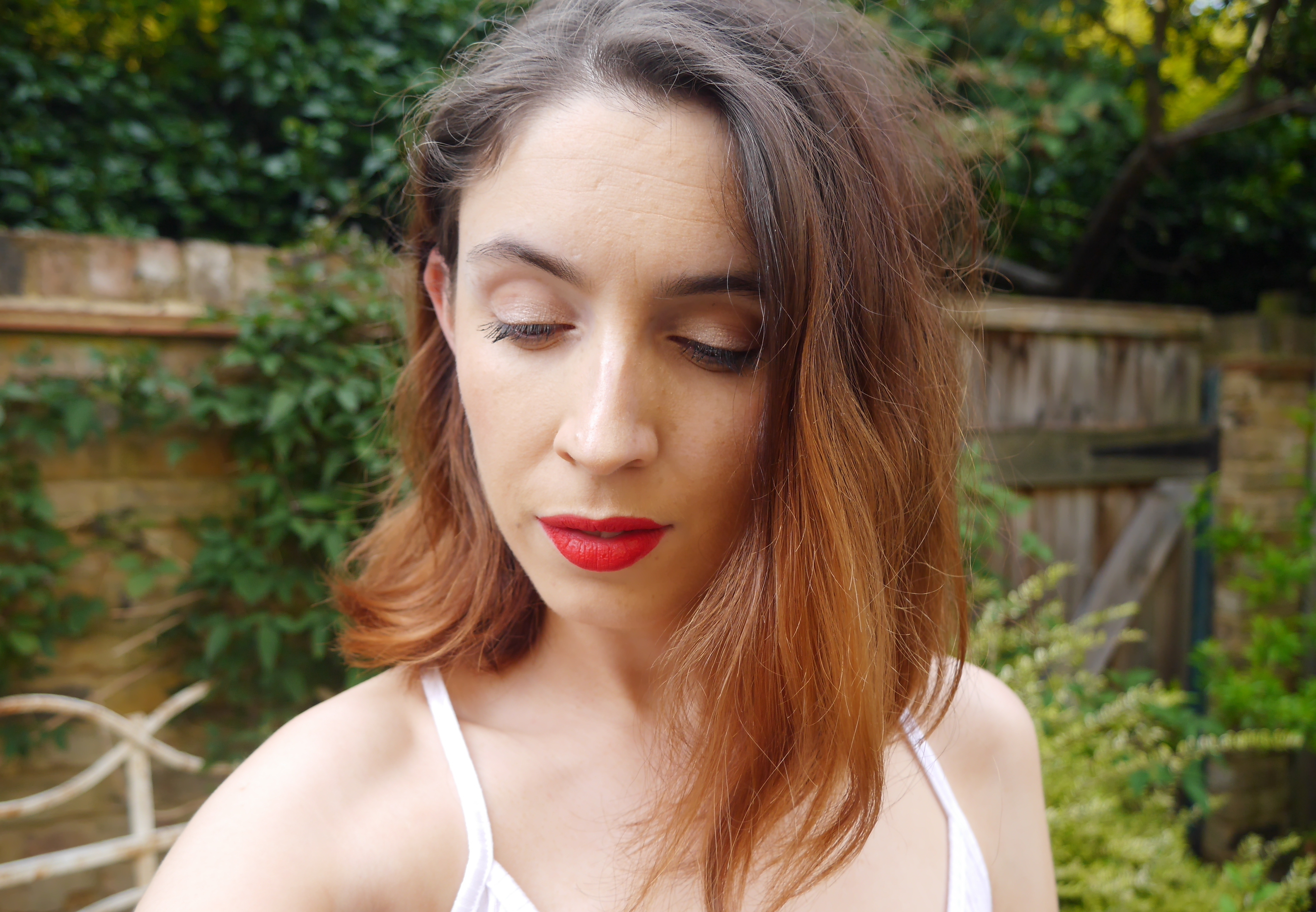 Finally the sun is shining on a more permanent basis and the legs are out! I love my pale skin don’t get me wrong and I always slather myself in SPF when I go out but when July and August hit I get the tanning itch and I can’t help but do a little faking with the help of Cocoa Brown Dark Tan, as soon as i’m a little more bronzed I change up my make-up to a slightly subtler eye look with a bolder lip.