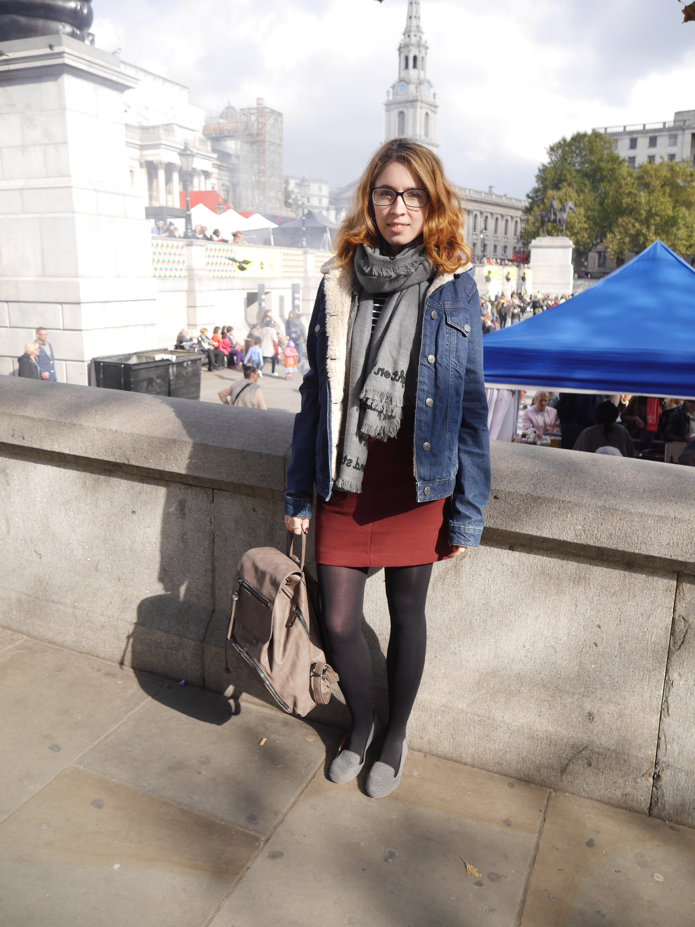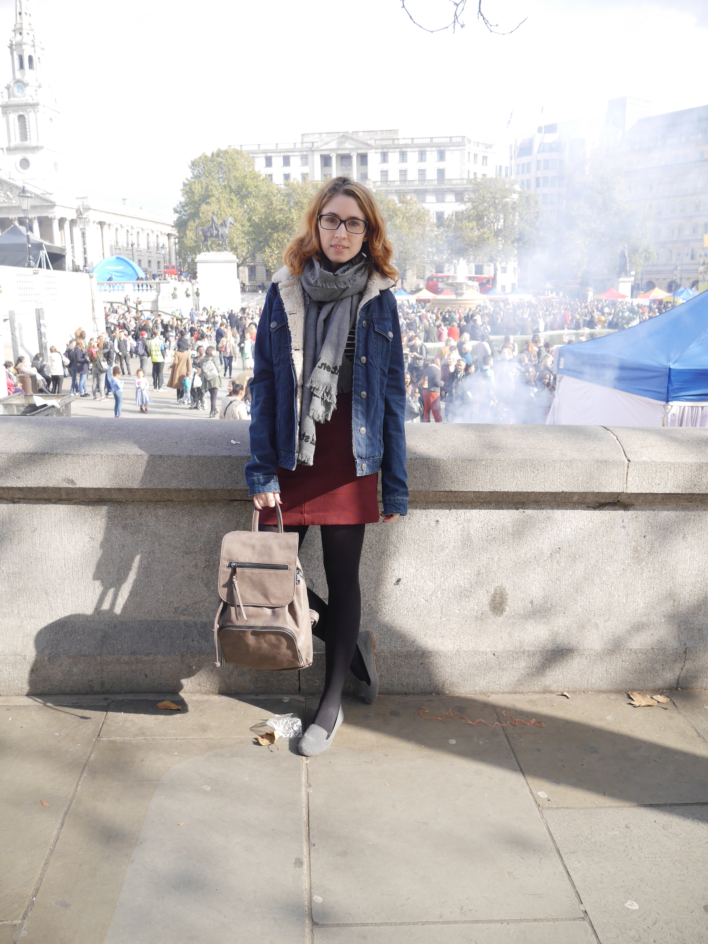 Skirt – H&M|Shoes – H&M|Jacket – Topshop (similar)|Backpack – Aldo via ASOS|Glasses – Specsavers|Scarf – HUSH