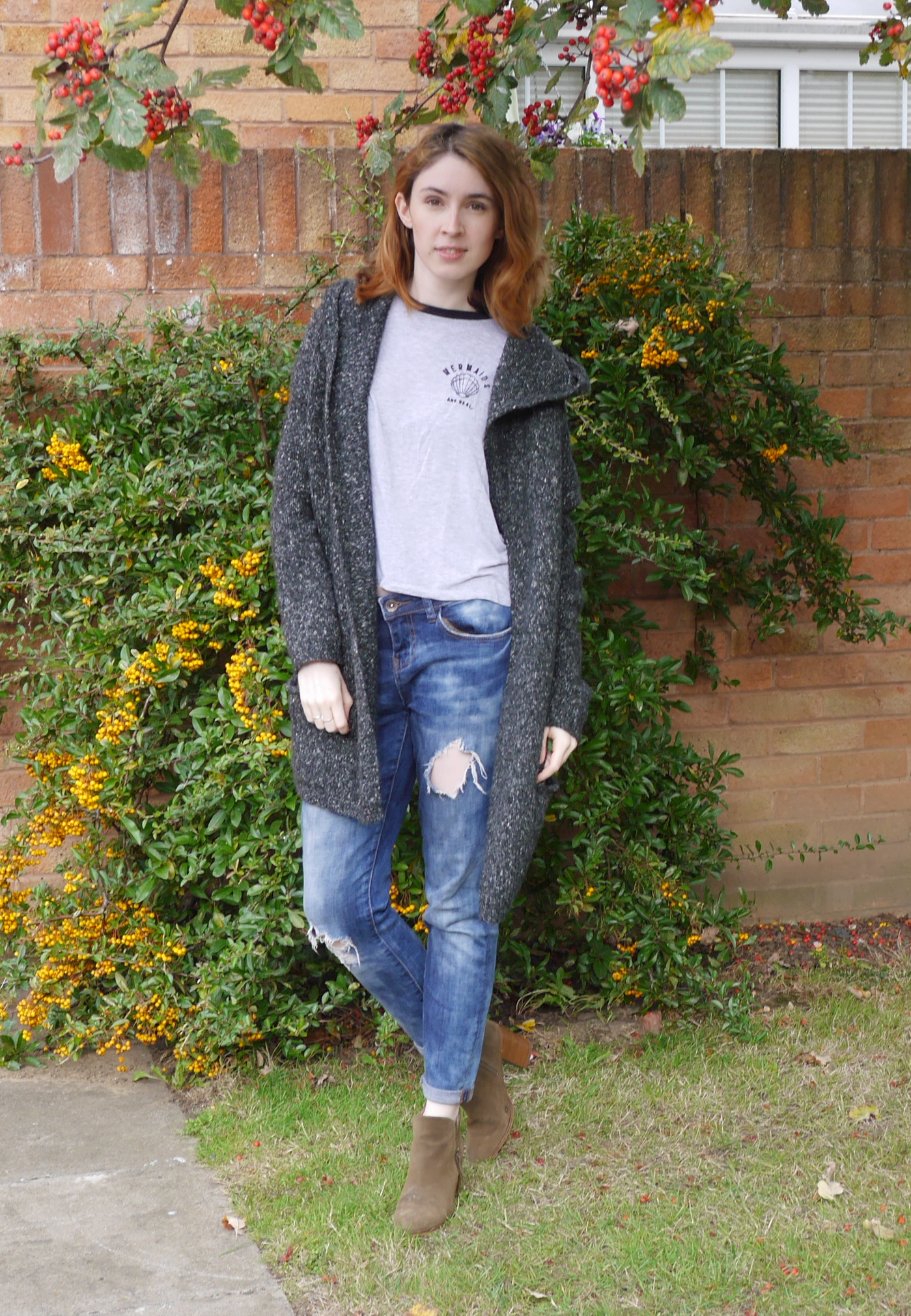 T-shirt – Pull&Bear (similar)|Jeans – New Look|Boots – New Look (similar)|Cardigan – Brandy Melville.