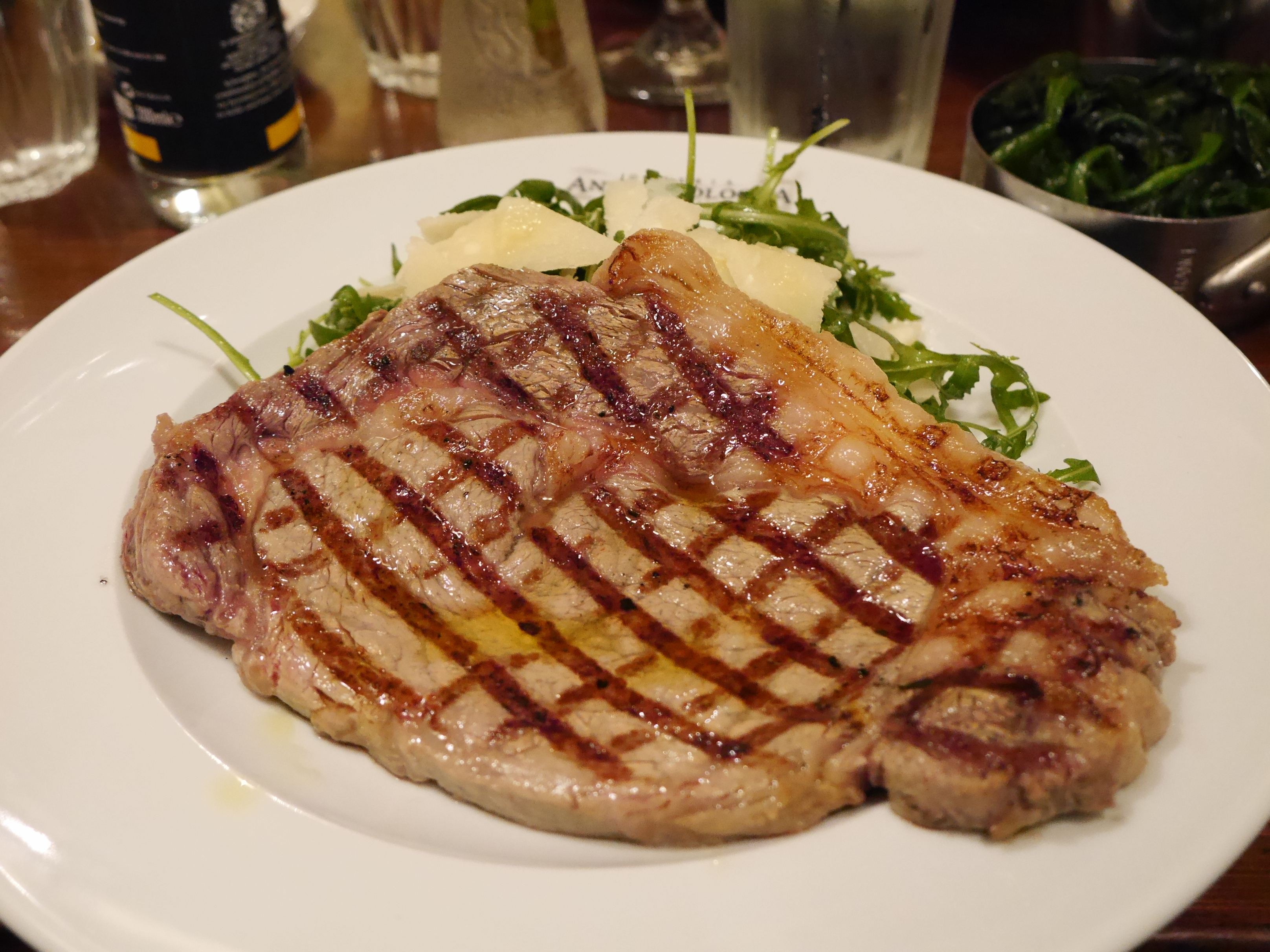 We all went straight for the main course and I couldn’t resist getting Bistecca di manzi con rucola e parmigano; or Chargrilled sirloin beef steak with rocket and parmesan salad. I ordered mine with a side of spinach and some fries.
