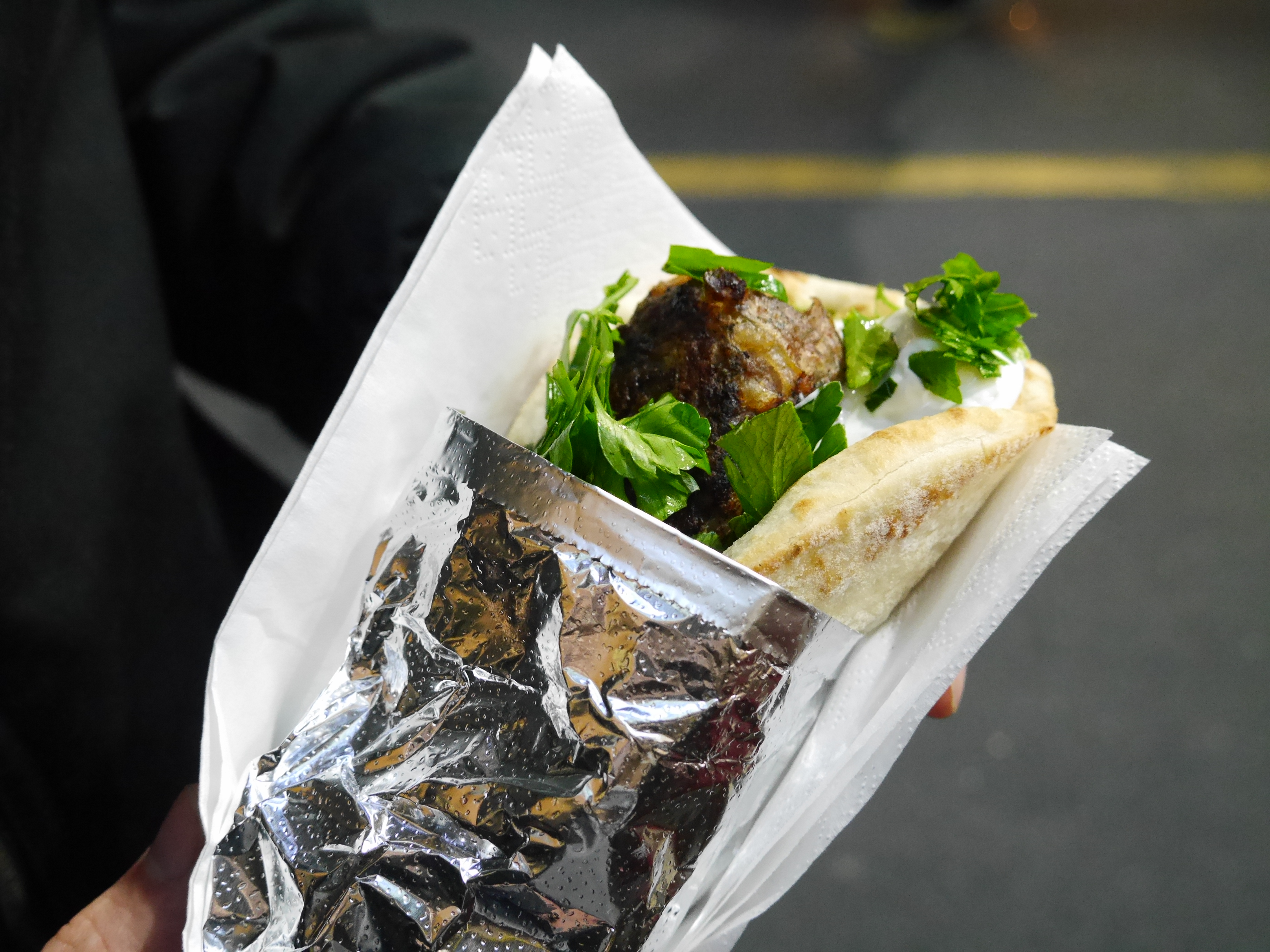 I slightly panicked when it came to ordering because I wanted everything so I didn’t actually take note of what stand I bought this phenomenal roast lamb wrap with tatziki, onions and salad but it was delicious so if you can find it definitely get one to munch on.