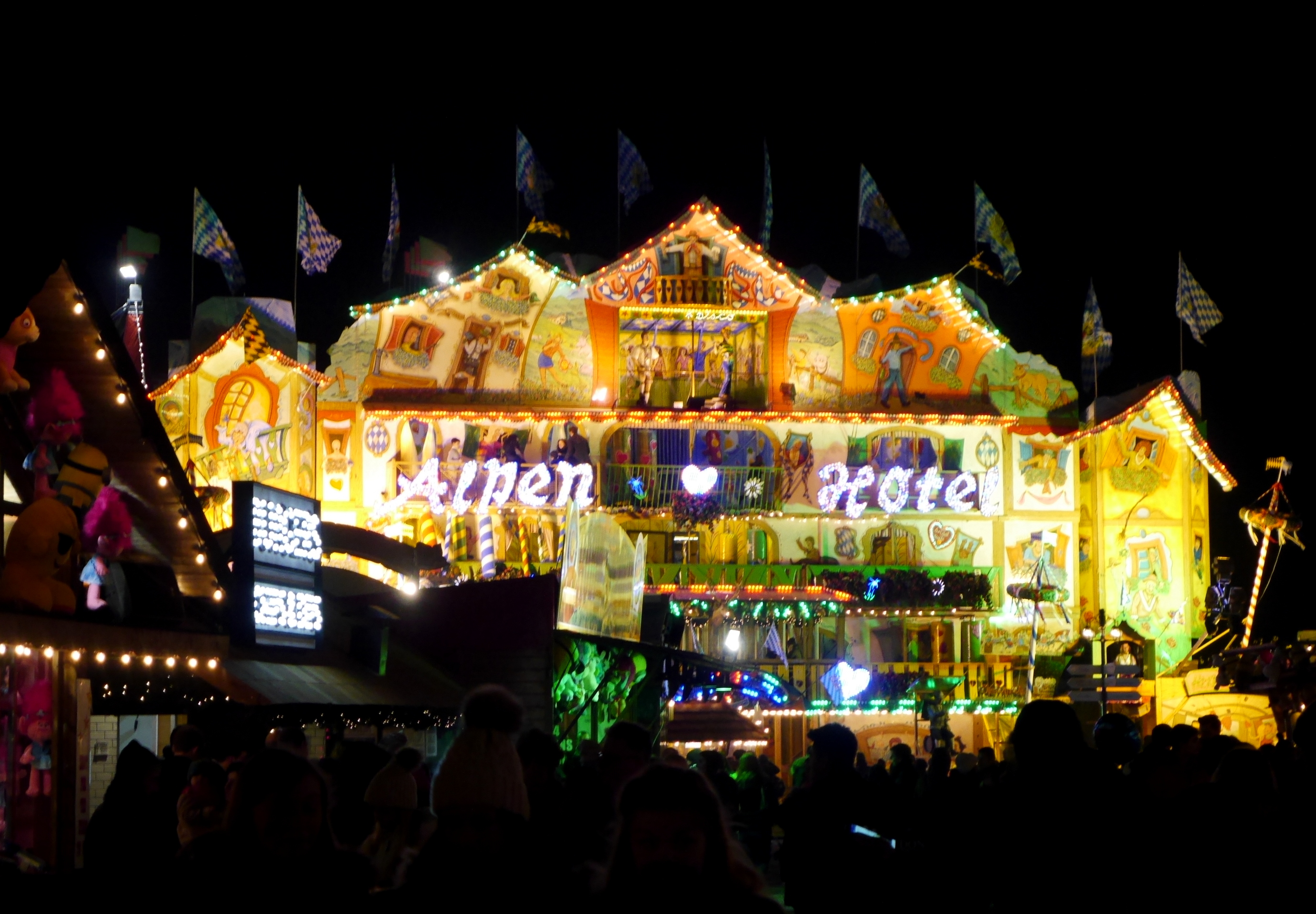 We fought our way through the crowds, even on a Monday it was pretty packed. Heading towards the Bavarian Village in search of festive drinks.