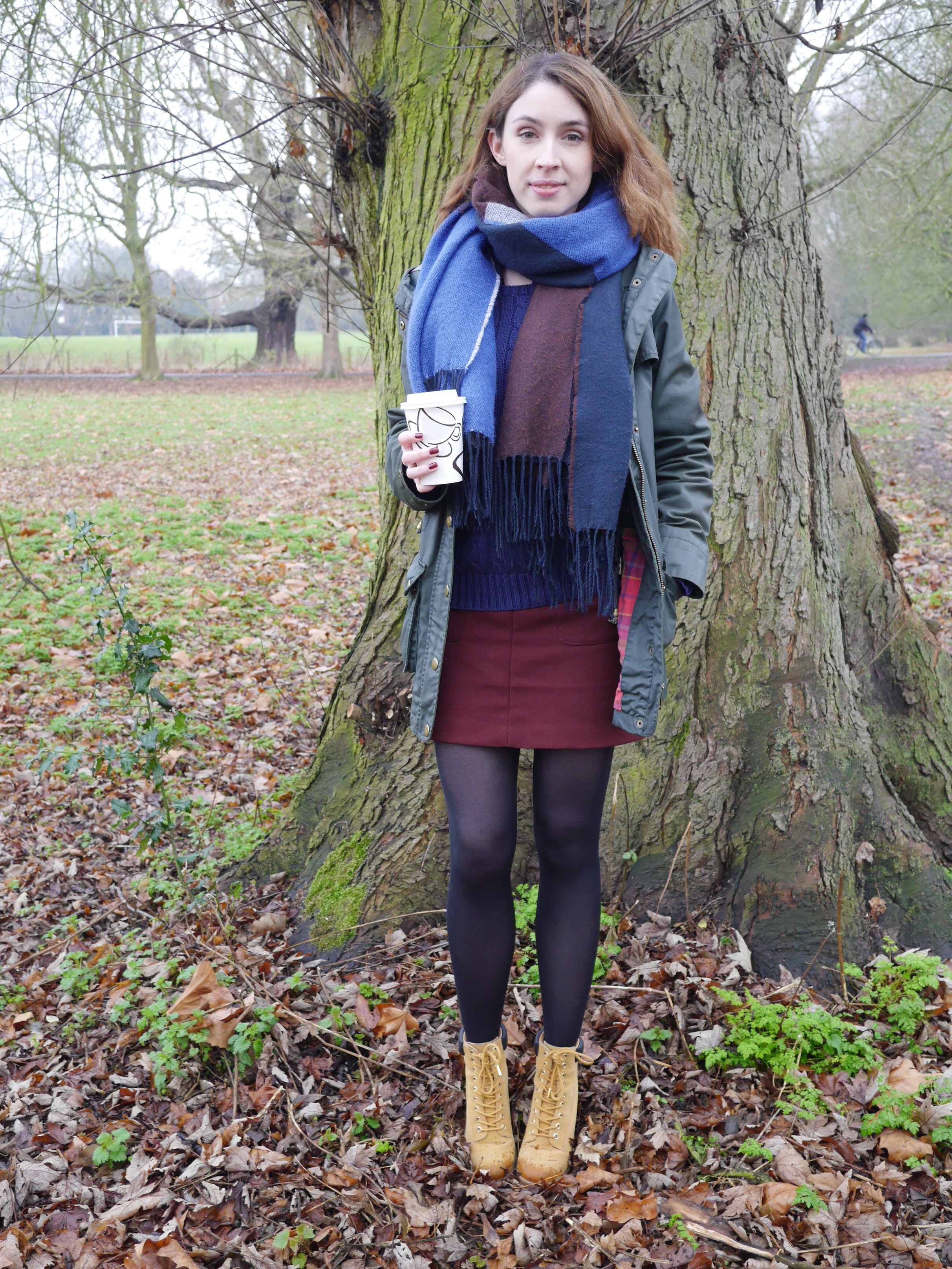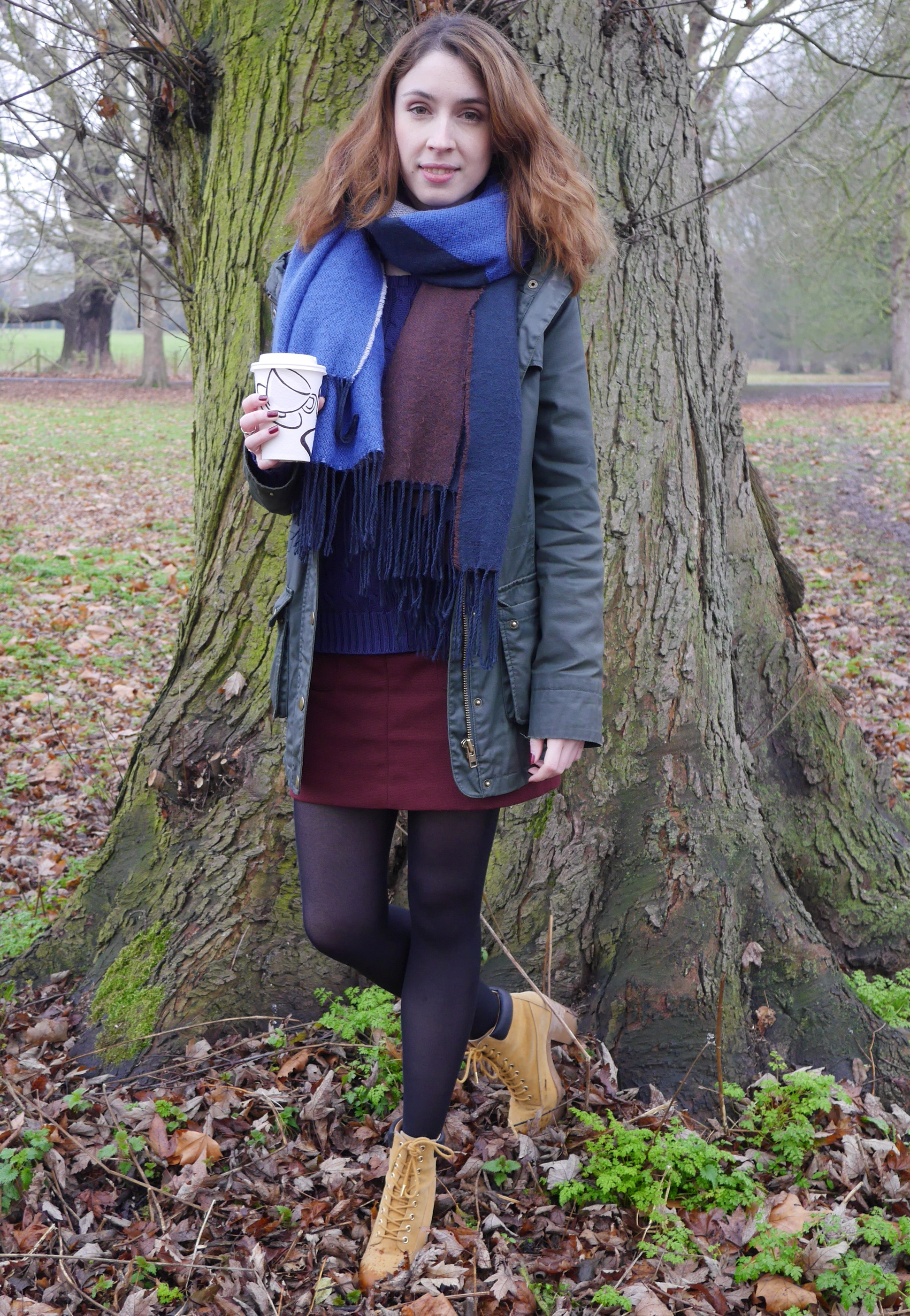 Skirt – H&M (similar)|Jumper – Ralph Lauren|Boots – River Island (similar)(Timberland Version)|Scarf – H&M (similar)|Coat – Jacks Wills (similar)