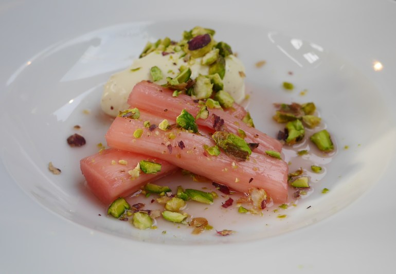 To finish up we picked the Vanilla Set Creme with Rhubarb and Pistachios a gorgeous combination of sharp and sweet and we both wished we hadn’t shared it!