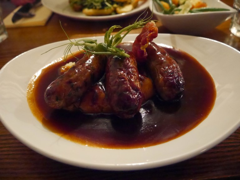 Followed by Pork and Leek Sausages with Pressed Bacon, creamy Mash and rich Gravy. Mum went for the Salmon Special but had already tucked in before I could snap a photo.