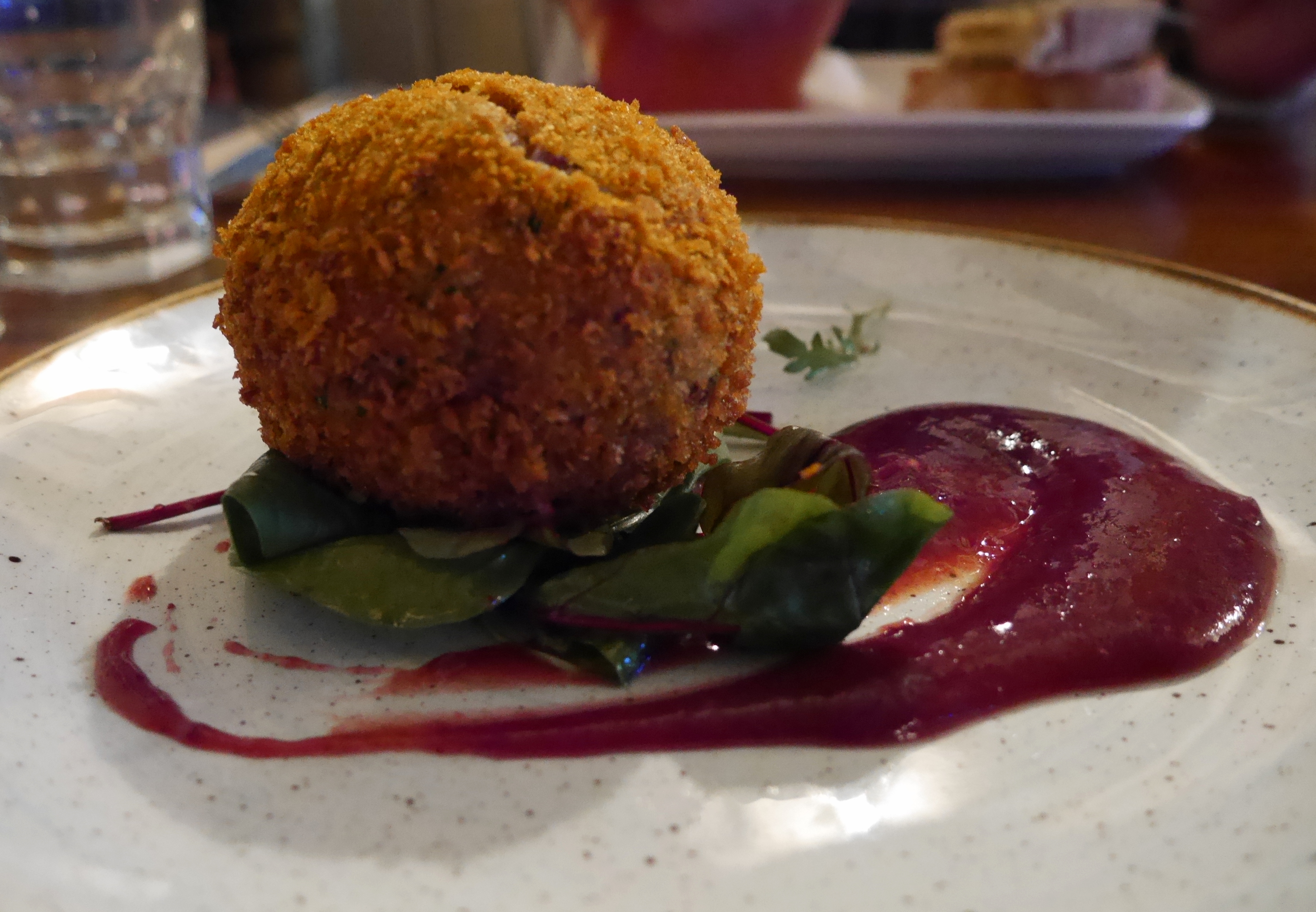I started my evening with a Confit Duck Leg Scotch Egg served with Plum and Red Wine Jus cooked perfectly and bursting with flavour.