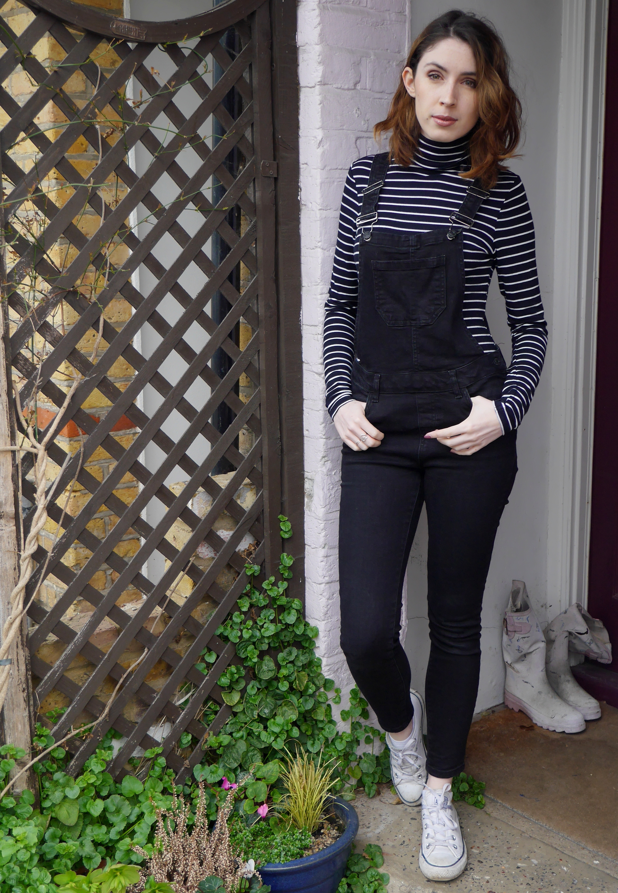 I never thought I would get into the dungaree trend but here I am picking them as a staple in my wardrobe. They are just an outfit in themselves meaning you’ve just got to add a top and some shoes and you’re done no faffing around; plus they’ve got plenty of pockets which is always a good thing in my eyes! You also can’t go wrong with classic white converse and a striped polo neck which is why this outfit is my go to for a day out shopping, date night or sight seeing.