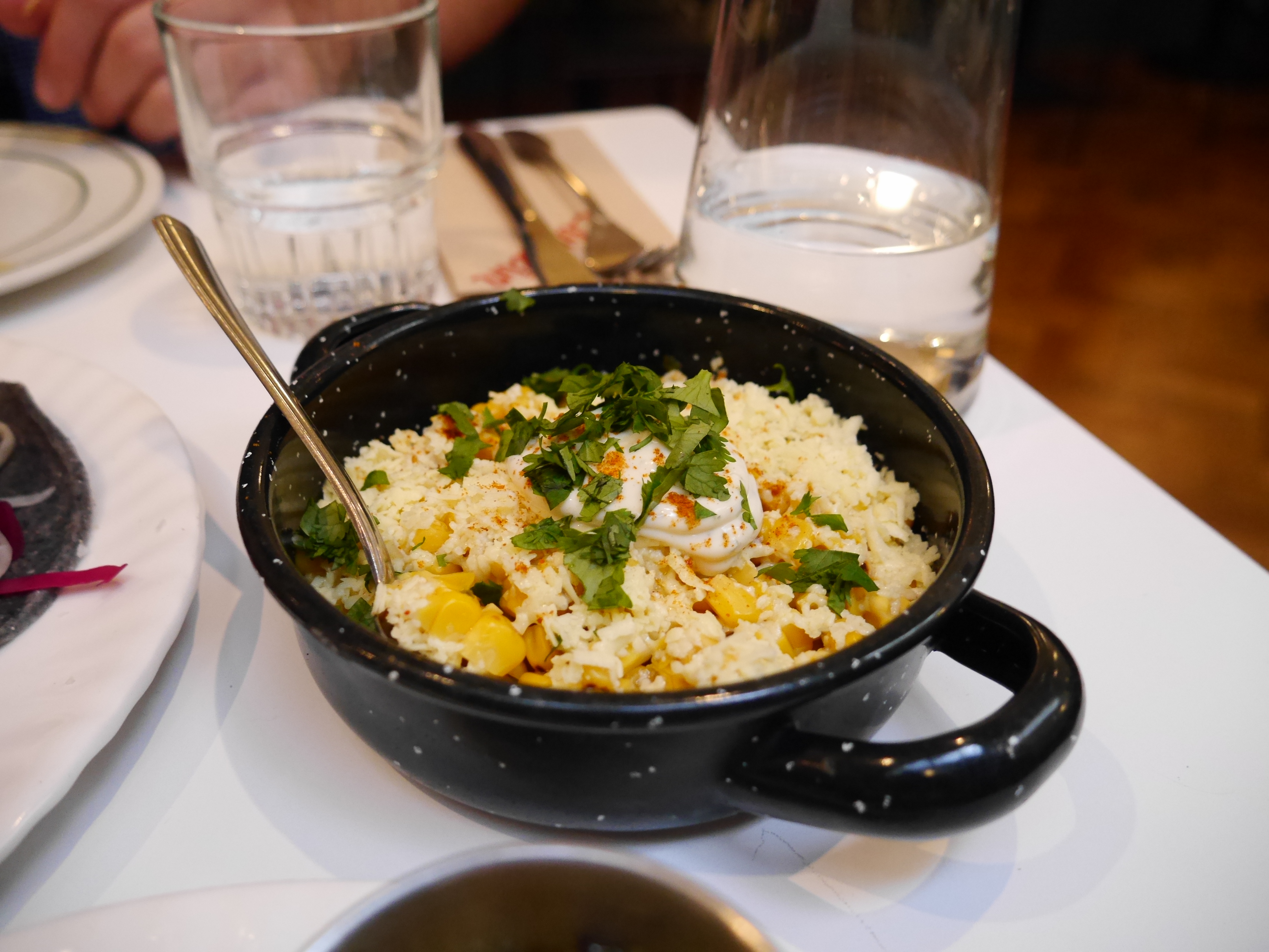 We had a bowl of Esquites on the side; grilled sweetcorn, stripped from the cob & served with guajillo chile powder, epazote mayo, lime, cows milk cheese. Not my favourite dish of the meal but still tasty.