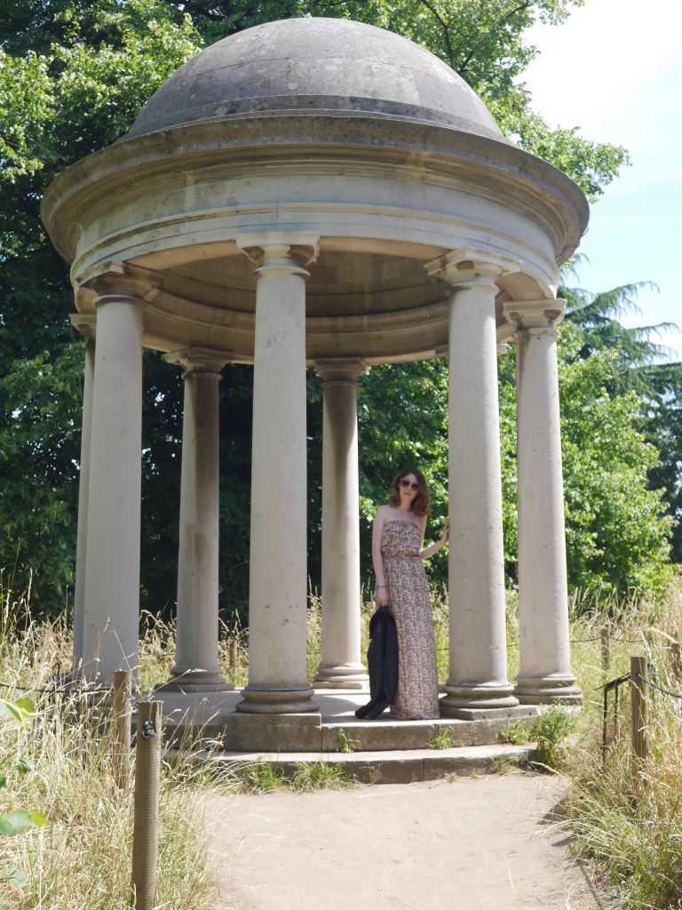 Hidden away just up a little hill from the kitchen garden is the Temple of Aeolus the perfect spot to take some snaps of my outfit and also it gives you a great view of the gardens.