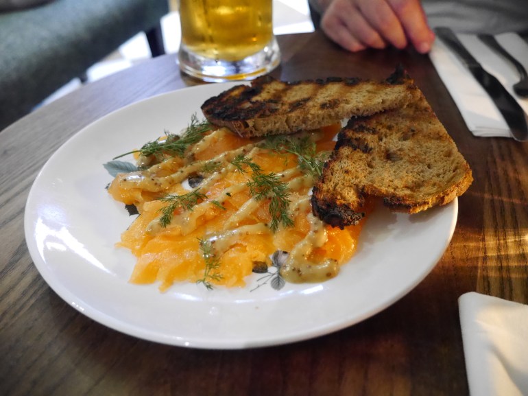 We kicked the meal off with some gin cured salmon with mustard and toast. I wasn’t sure about mustard with salmon but it’s an amazing flavour combination and I kind of wished we hadn’t shared.