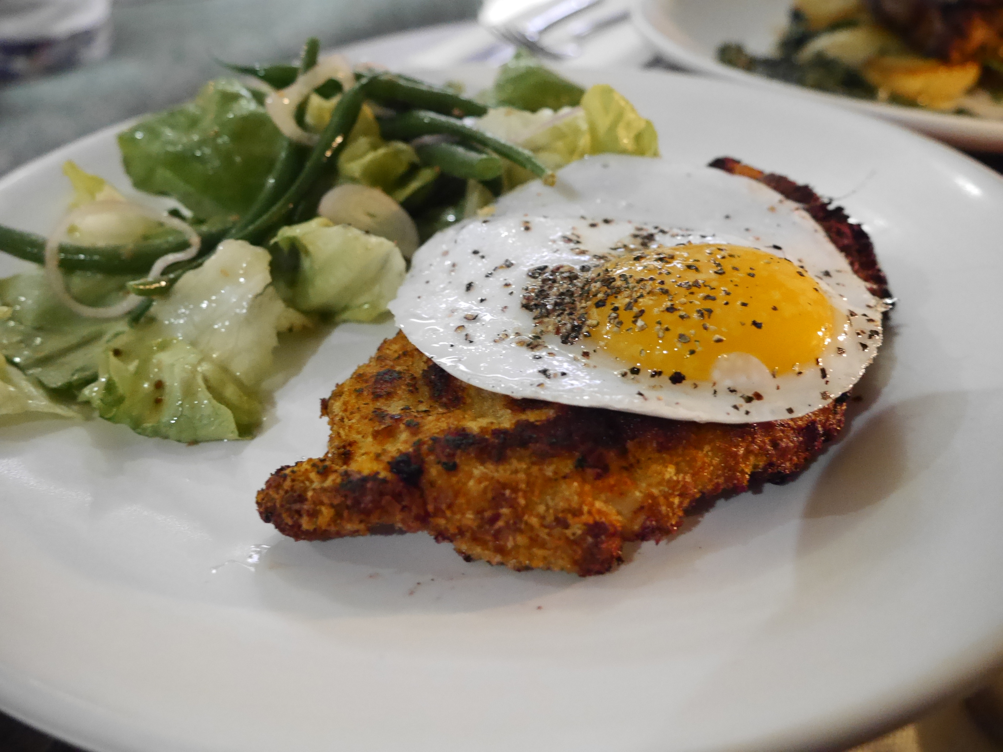 Not going to lie, I had major food envy of the Mr’s lamb chop with salsa verde and sauté potatoes however my pork schnitzel with a fried egg and salad was really tasty.