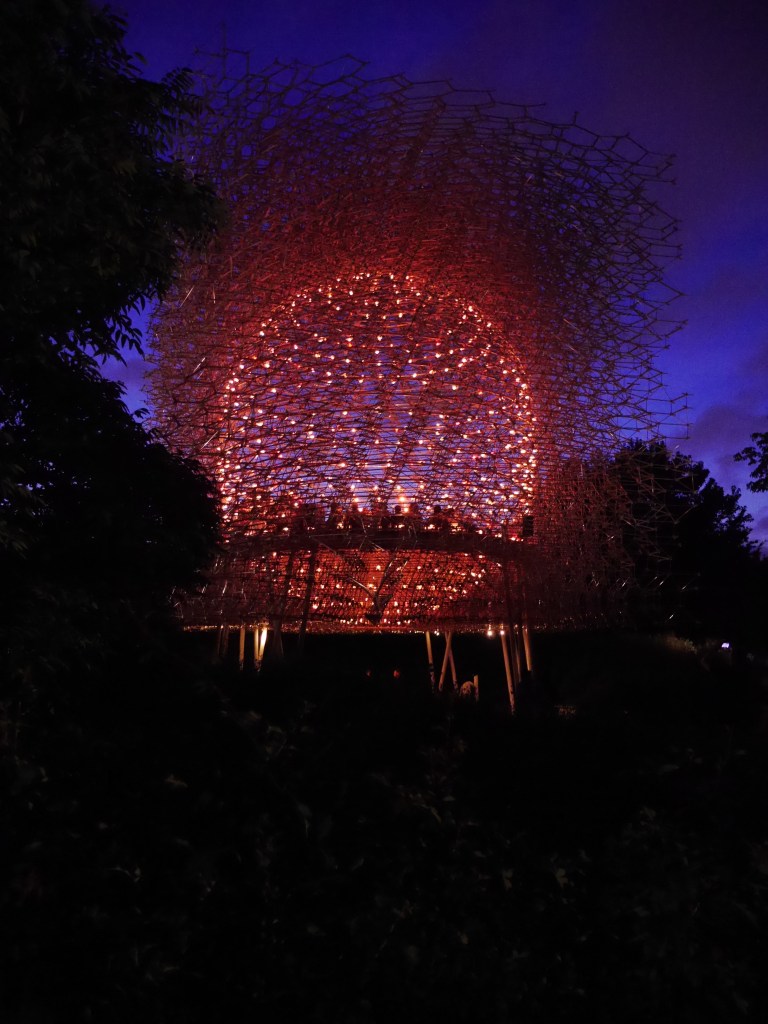 Glittering through the trees The Hive, looked more like a fairy party than a metal structure.
