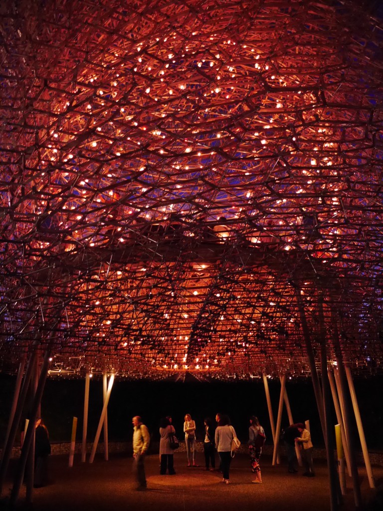 The Hive in the daytime is magical enough but at night it really comes to life. The lights you see and the sounds you hear inside are triggered by bee activity in a real beehive at Kew. It’s like being inside a beehive but slightly more hypnotic.
