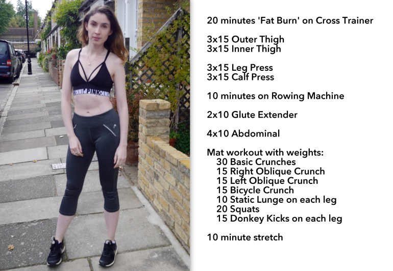 I tend to go to the gym 3 to 4 times a week with a home workout thrown in when I can’t fit in a full hour at the gym. I like doing an hour (including a 10 minute cool down stretch) but often end up only doing 45 minutes. I’ve learnt that they key is too never be disappointed in a workout – it will put you off going for the rest of the week; you went and did exercise and every little helps! I do post my workouts on my twitter but thought I’d share with you my normal full body workout which I try to do at least once maybe twice a week. Focusing my other two days on legs or abs.