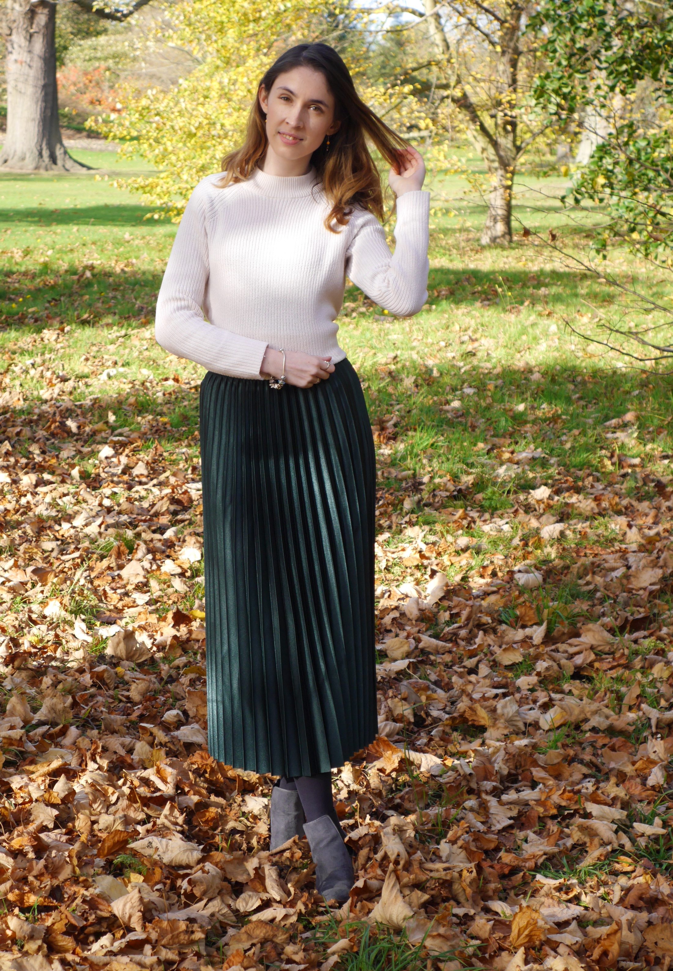 You may have noticed I have been attempting to move away from my traditional uniform and try some new things, however I still want to buy timeless pieces. I spent hours looking for the perfect A/W skirt and finally found this gem from Mango, a shop I’ve never really shopped from but it’s now officially on my radar! Its the perfect colour for the colder months as it just screams Christmas at me – can you tell I’m excited for the festivities to begin? As a more petite lady I sometimes struggle with this length skirt as it’s not quite maxi so I dug out my old favourite heeled boots to add a little height and to sort out proportions but can also see myself pairing it with black heels for more of party vibe.