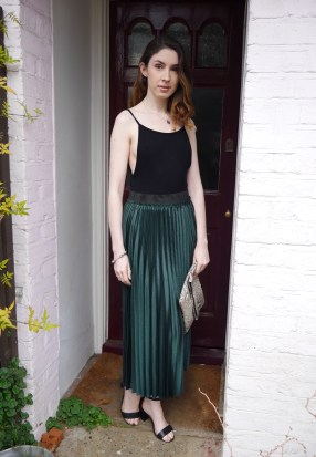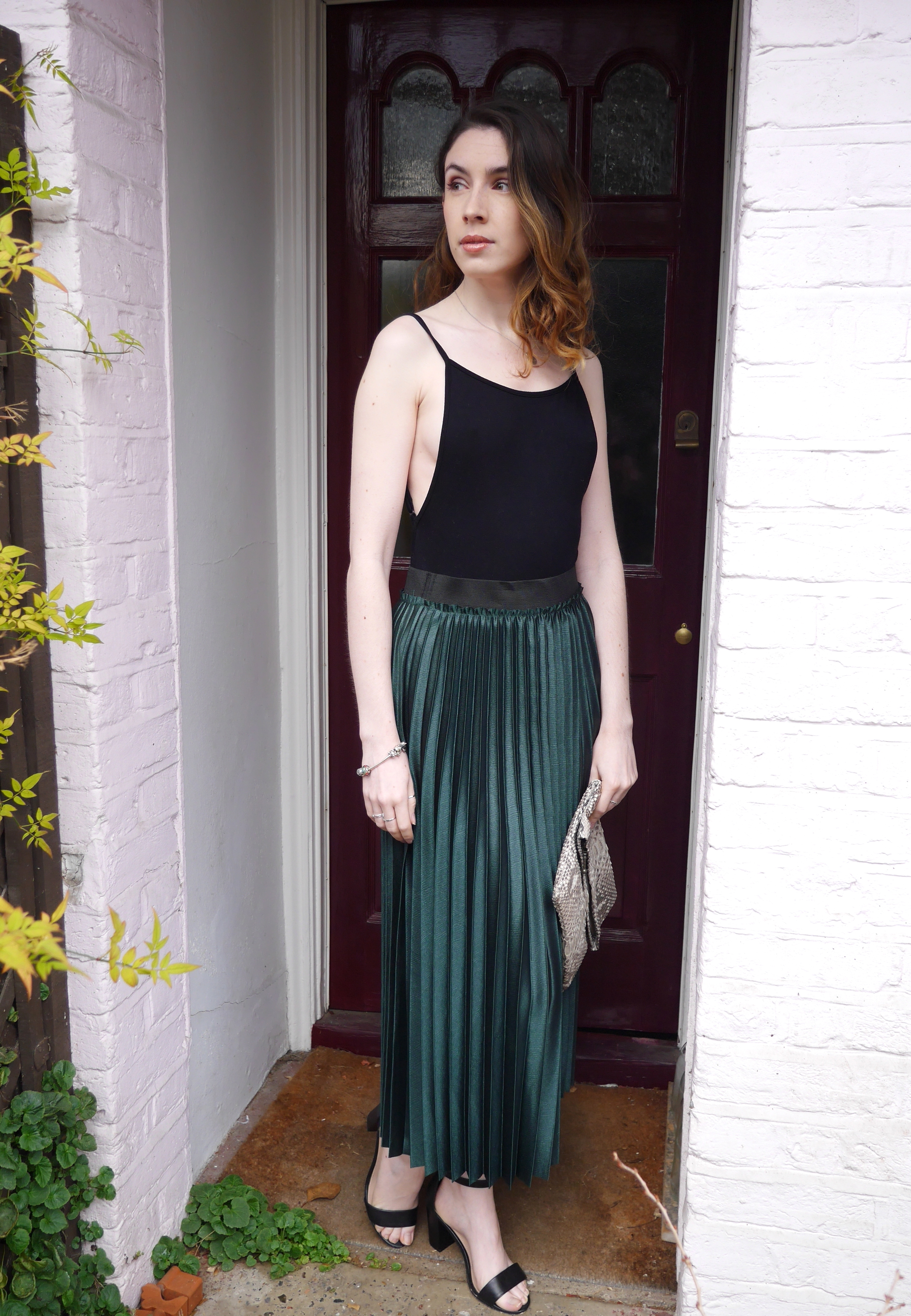 I don’t often get the chance to dress up but as soon as the next opportunity comes around I am definitely popping this outfit together again. The backless leotard with a cheeky bit of side boob helps make up for the length of skirt, giving the outfit a bit of spice. I tried this with a long sleeved leotard and it certainly didn’t have as much drama to it or look as chic. I paired it with my favourite go to black heels and added some texture with a snakeskin clutch. I can see this outfit for a NYE bash, or a night at the opera – depending on what sort of circles you socialise in. Pop a blazer or leather jacket on so you don’t freeze in the winter months.