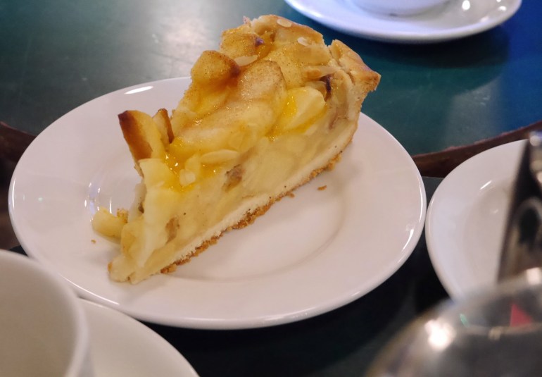 Moist apple pie topped with cinnamon, superb paired with a traditional tea or a cappuccino.