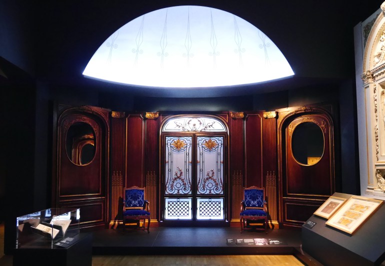 I wasn’t entirely sure what to expect and was slightly skeptical on how there could be a whole exhibition about cruise liners, but everything was just gorgeous and completely over the top which made me love it even more! The exhibition takes you on a first class trip through the ages of cruise liner design and how it’s shaped the modern cruise. Not only are there beautiful pieces of furniture, artwork and advertisements but they have some treasures from ocean liners that have sunk to the bottom of the sea. When the Lusitania sunk this Cartier diamond and pearl tiara owned by Lady Marguerite Allan was saved from the chaos by her maid.