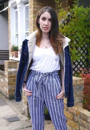 I have been wanting a pair of striped trousers since summer last year so adding these to my wardrobe was a dream. I love the paperbag waist and they fit my petite frame incredibly well. I got mine in XS thanks to the very handy size guide on the website. These are the perfect pair of trousers for both the work place – paired with a long sleeve roll neck and colour pop loafers and whatever weekend adventures you are getting up to. Possibly won’t be getting as much wear as I might like out of these as we move into the winter weather but I’ll be wearing them as much as possible in autumn till the frostbite sets in.