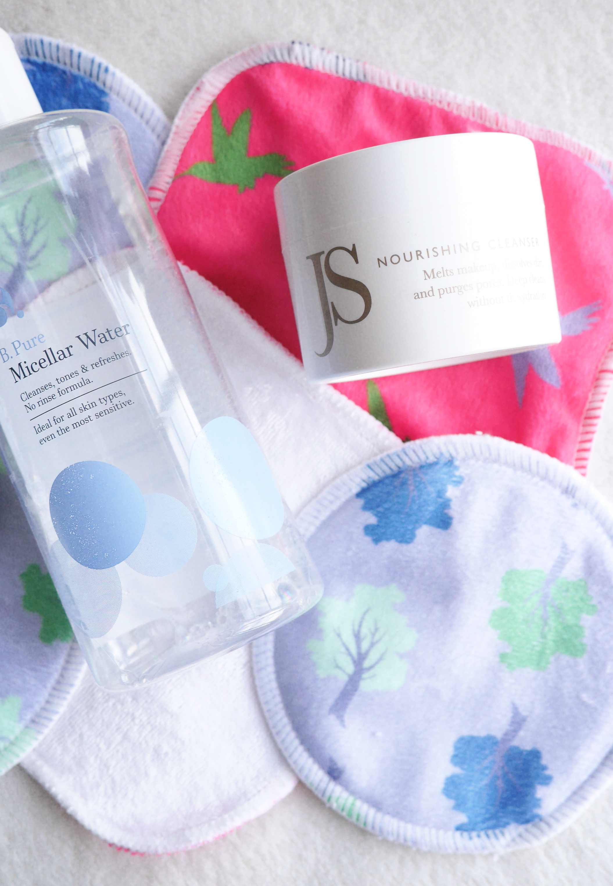 They are made of bamboo which is not only soft but grips onto makeup and takes it off easily. I use it just like a cotton pad, soak a little micellar water on the pad, hold on the eye for a few seconds and then swipe to remove. Then I just pop it straight in the machine ready for when the next wash goes on. They also work well with oil based cleansers and cream cleansers. It’s like a flannel except you can use micellar water with it and it’s a little softer on the skin. The kit comes with coconut oil (which i’m not using as a cleanser but I am using as a lip balm) and a handy box to keep everything in ready for use.