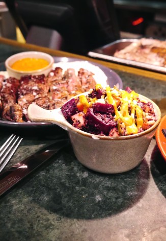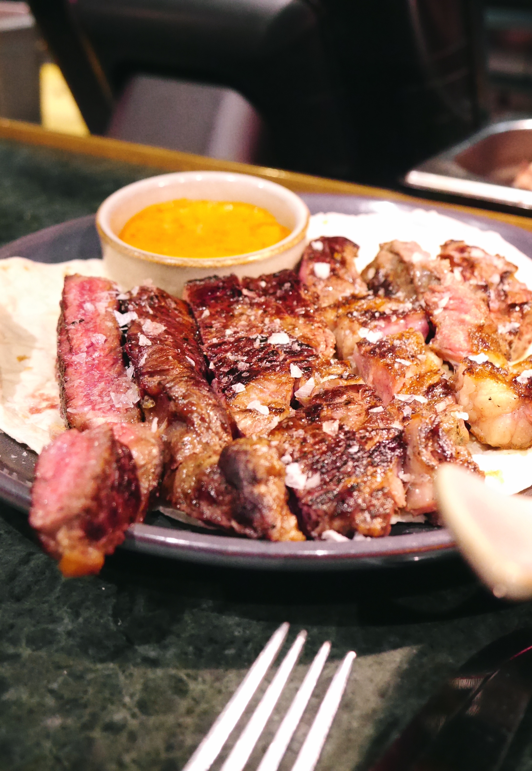 I won’t lie, the feast we ate was much bigger than this but we were ravenous and had scoffed quite a lot before I remembered to take a snap. I was brave (for my standard) and tried the Smoked Goat which came served on a delicious flat bread and was seasoned to perfection. I paired this with something named Smack Cucumber which is literally the best thing in the world and I want the recipe, absolute salty fresh perfection. The Mr treated himself to large amounts of beautifully cooked Ribeye Steak; again perfectly seasoned and paired with Smoked beets, Quinoa, Apple salad. The crowning glory of the meal was the Lamb Fat Potatoes, decadent, delicious and would probably make your cholesterol go through the roof.