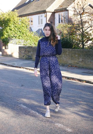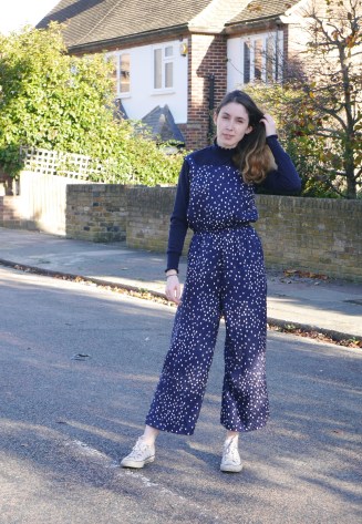For some reason I feel very scandinavian in this outfit. The Mr described it as toddler chic. Either way I love the fact that I can layer up my favourite jumpsuit for the colder weather. The H&M top has a gorgeous frill on the neck and sleeves which is great for making a basic item have a little oomph, very cosy for this sudden cold snap with occasional spots of sun.