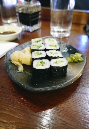 We always order Hosomaki, this time round Cucumber. The simplest form of sushi but in my opinion the most delicious, especially when dipped in Soy Sauce. Order the Dragon Roll; prawn tempura, asparagus, spicy mayo topped with avocado and the Spider Roll; soft shell crab with kimchi mayo, cucumber topped with avocado and tempura crumbs (not pictured because the Mr couldn’t wait) both bursting with well balanced flavours.