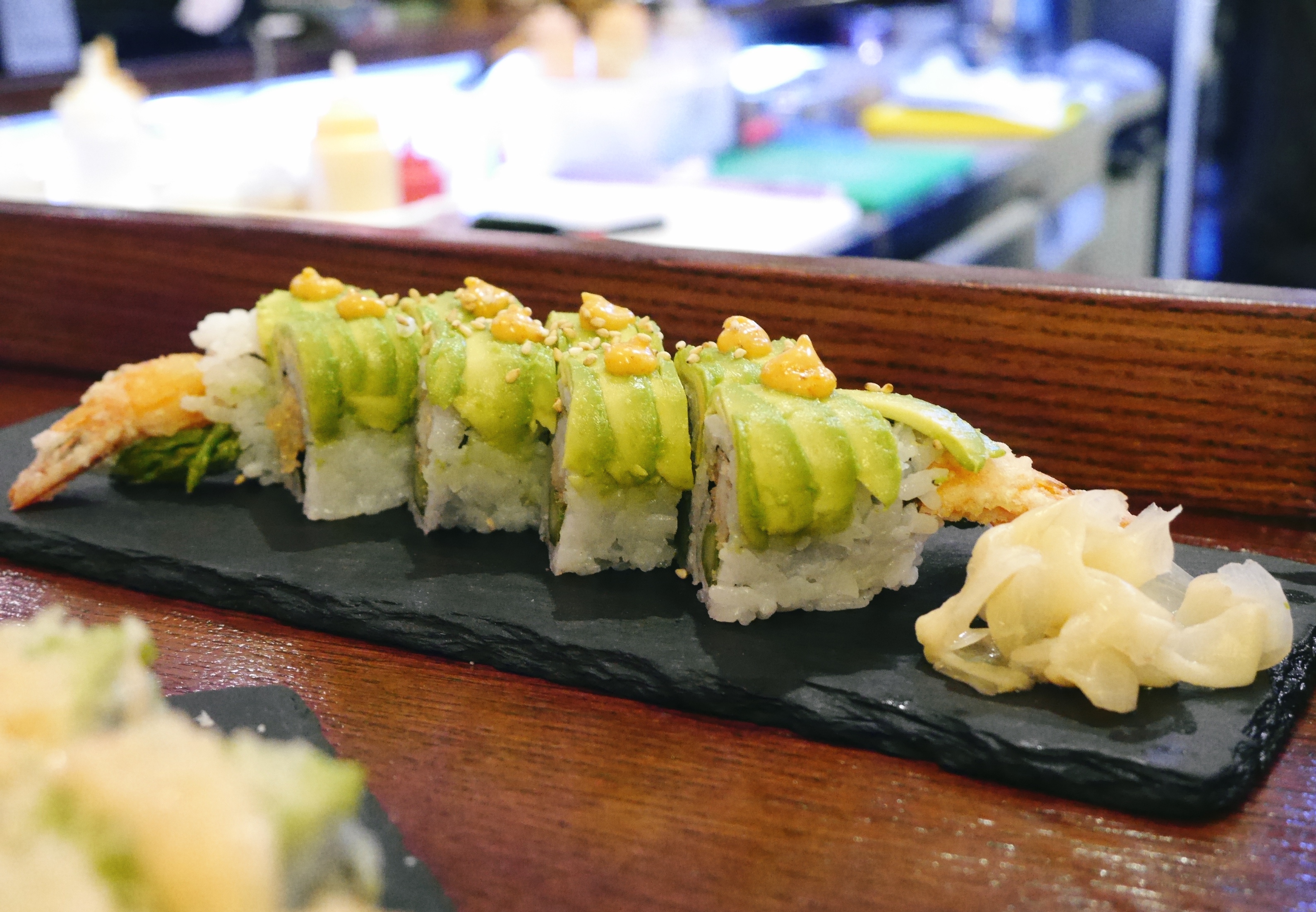 We always order Hosomaki, this time round Cucumber. The simplest form of sushi but in my opinion the most delicious, especially when dipped in Soy Sauce. Order the Dragon Roll; prawn tempura, asparagus, spicy mayo topped with avocado and the Spider Roll; soft shell crab with kimchi mayo, cucumber topped with avocado and tempura crumbs (not pictured because the Mr couldn’t wait) both bursting with well balanced flavours.