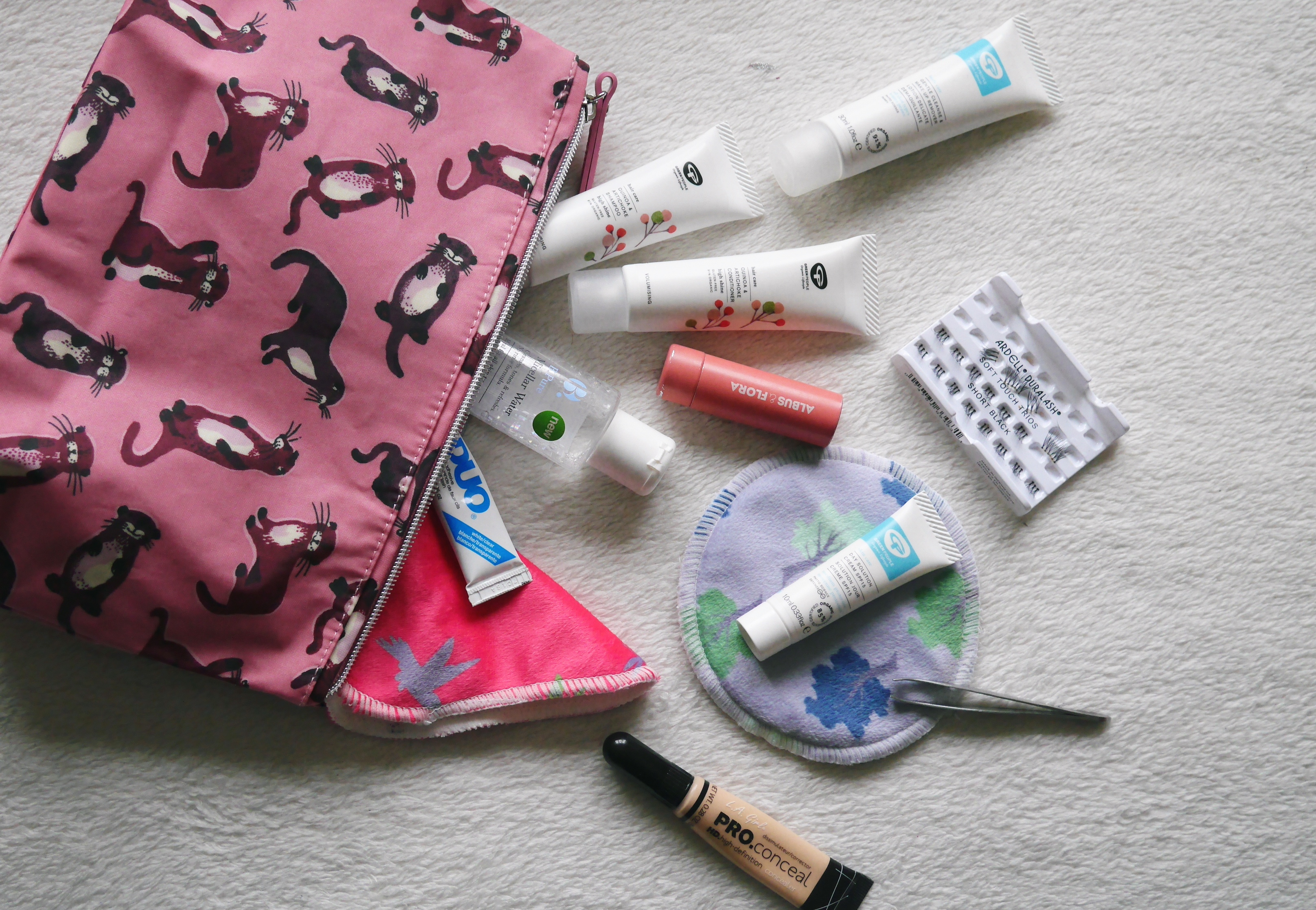 It’s been a little while since I’ve had to take hand luggage with a restriction on liquids so I thought I would share with you what I packed in my hand luggage for my recent Euro trip. It’s nothing mind boggling but I’ve found some ace little products perfect for travelling and not compromising on quality or ethics.