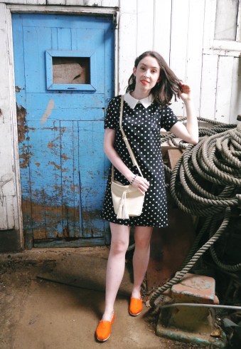 The hot weather did slightly confuse me as it’s been pretty miserable in London recently so I reached for a style staple, the LBD. Paired it with some colour pop shoes a matching neon lip and a neutral bag. Simple but effective. The short length of the dress helps elongate my legs even in flats, but it’s not so short that i’m constantly pulling it down.