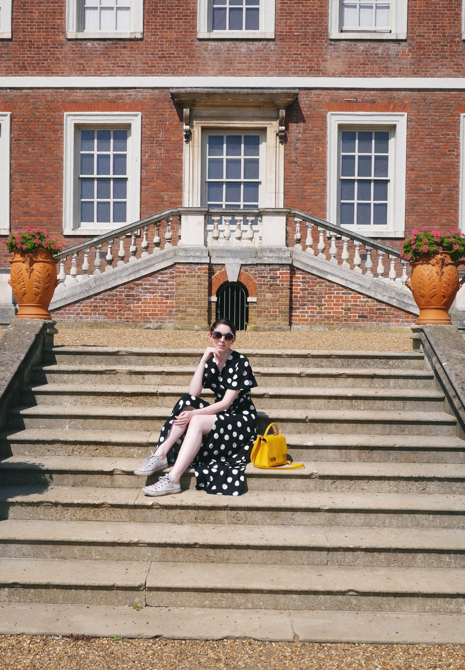 We had some very sticky days in August and this was the perfect wrap dress to throw on and wander through the heat in. Monochrome is alway en vogue so I know this will be stylish in years to come and a wrap dress is the perfect timeless cut. It can be both smart or casual simply by the shoes and accessories you choose to wear, converse for stately home exploring, sky high wedges – who am I kidding a sensible colour pop block heel and a clutch bagย for weddings, evening events etc.