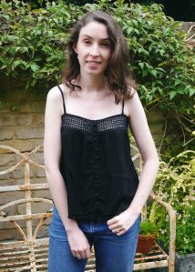 in my wardrobe however during this heat wave it’s been a god send. This works well with jeans and floral shorts; it’s what I would call a beach top but I think others might wear on a more day to day basis. The fabric is really lightweight and I love the button detailing, however it is a little peekaboo with the cut out detailing so a strapless bra or a bikini is definitely needed underneath.