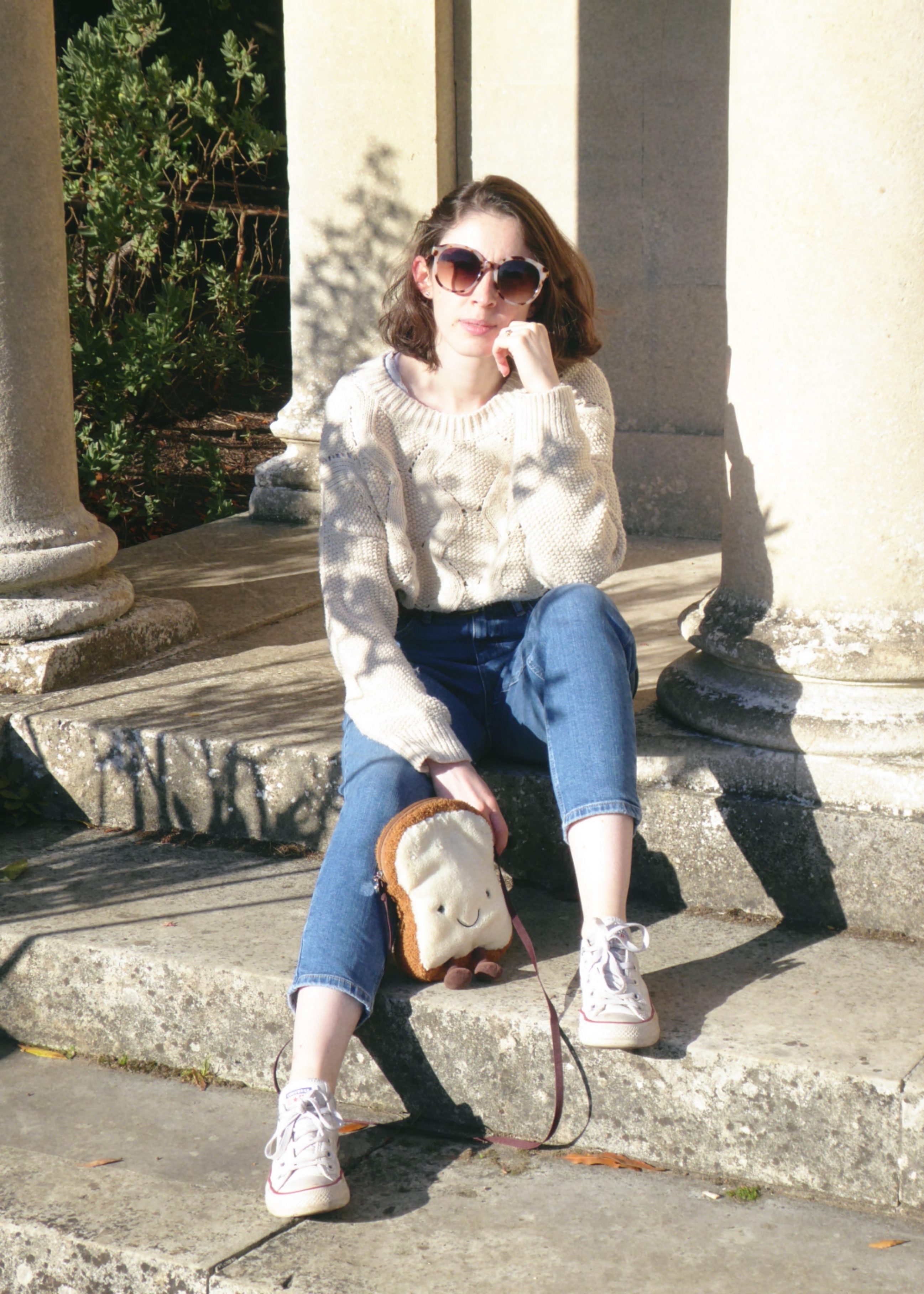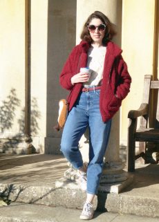 I love layering and in the UK you are going to need a coat; with Mom jeans a cropped coat or jacket works better for me as a full length coat can make me look swamped. I prefer to wear mine with Converse or TOMS I wouldn’t wear a heeled boot or heels with these jeans as it’s not my vibe and personally I don’t think it wouldn’t balance the outfit as well.