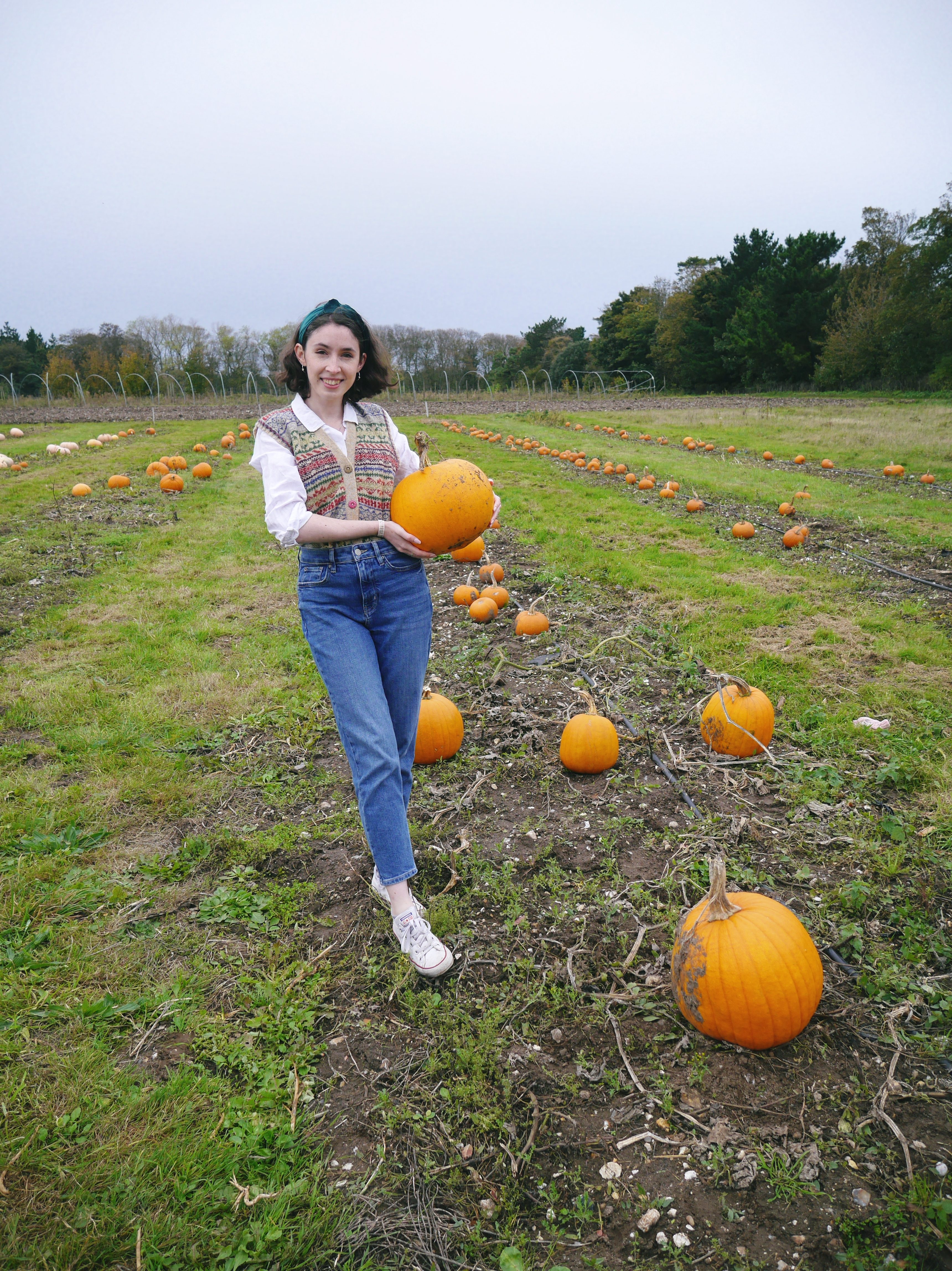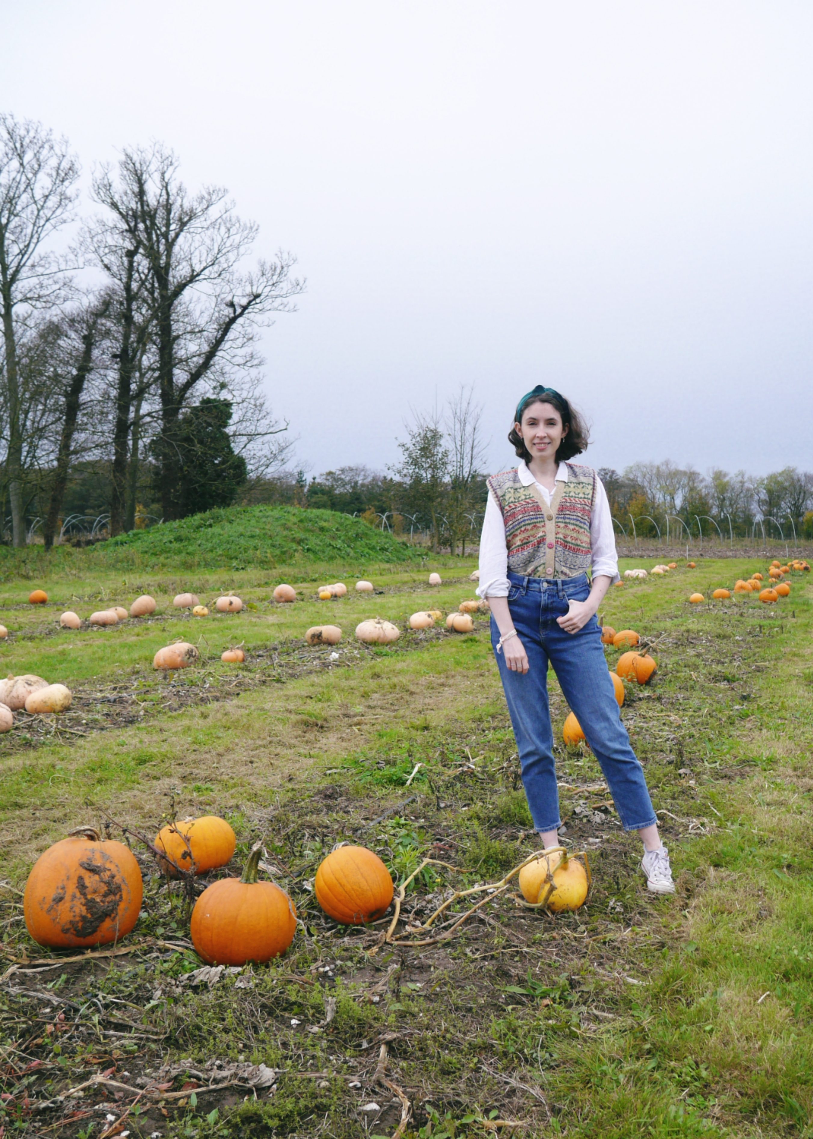 If Neville took his kids pumpkin picking this is what they would wear! I love pumpkin picking, I’ve not got the talent for carving them but we put this pumpkin into a risotto which was a much better use for it. The gorgeous hand knitted jerkin is from the Orkney Islands and I only recently re-discovered it it’s around 6+ years old but you’ll definitely be seeing it pop up more on the blog because it’s super warm and a great layering item.