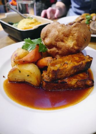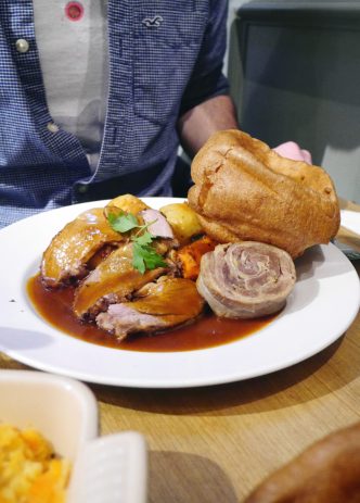 We kicked things off with a baked Camembert topped with chestnuts and sage, note the entire loaf that it comes with it, swiftly followed by a delicious butternut squash, chickpea, and cashew nut roast for me and a lamb roast for the Mr. Complete with fluffy Yorkshire puddings, crisp roast potatoes, lashings of gravy and a side dish fill to the brim with extra veg. Paired perfectly with a bottle of Fleurie, a smooth red with red currant notes. We were too full for dessert but the selection was good and I was very tempted by the Espresso Martini offering.