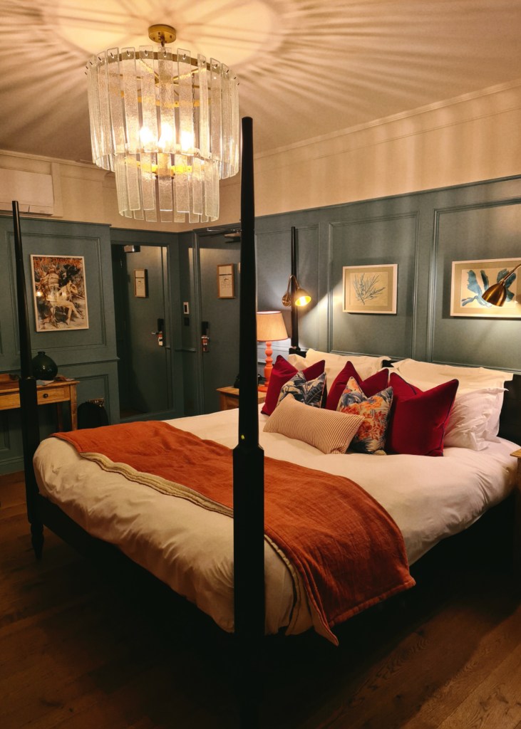 We drove up on Friday evening after work to the beautiful Canford Hotel which is situated in the Canford Cliffs. It’s about two and a half hours out of London in the car. We checked in with the delightful front of house team before settling into the spacious four poster bed with a glass of bubbles and a cheeseboard (bought by us as we were arriving late) I could already feel the weeks stresses leaving my shoulders.