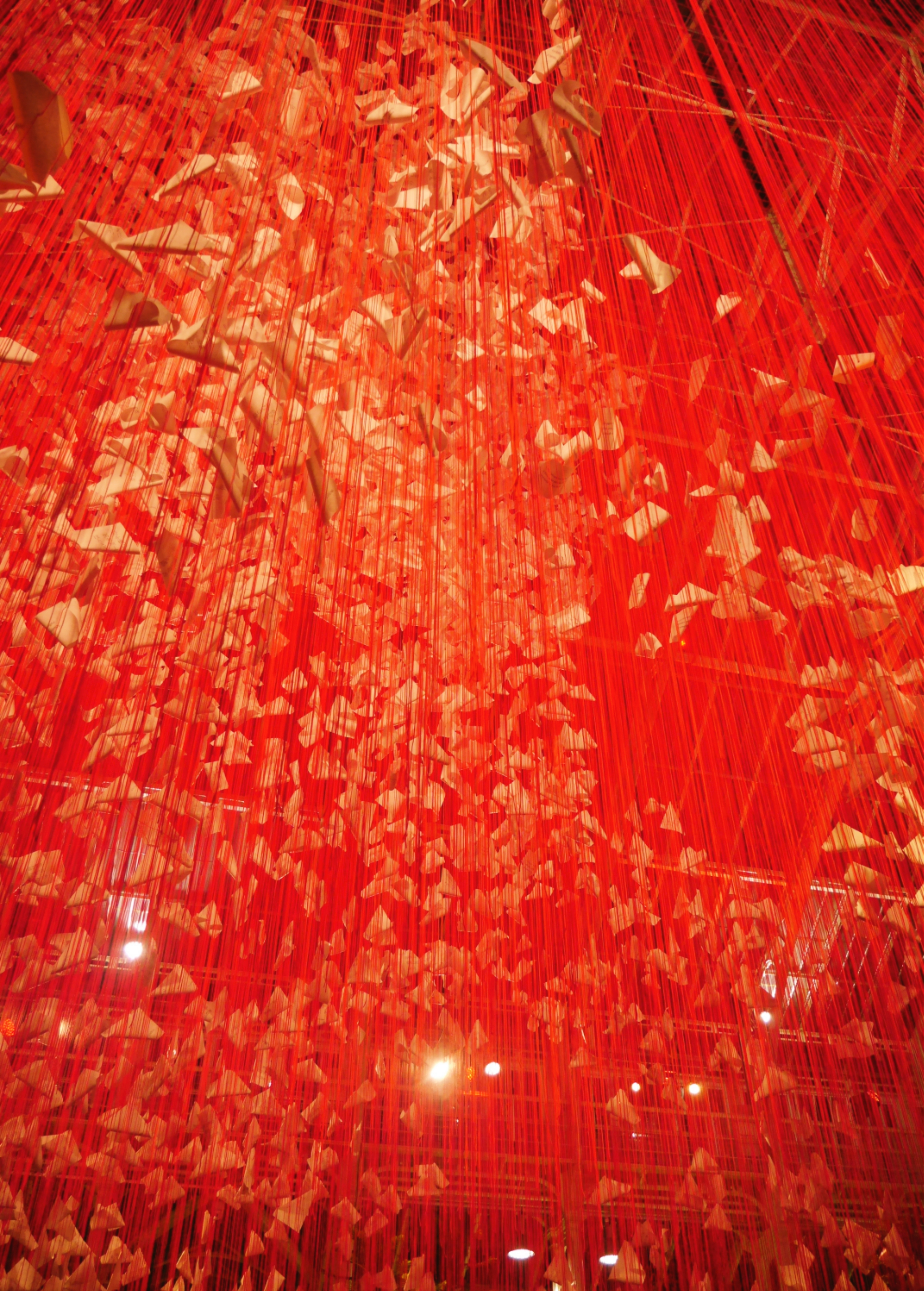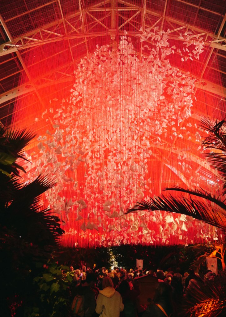 I dream of exploring Japan one day but enjoying a night of Japanese culture in the surroundings of Kew Gardens will settle my wanderlust for now and you can enjoy it as well at their autumn festival. The main focal point of is this beautiful installation by Japanese artist Chiharu Shiota titled ‘One Thousand Springs‘ it features 5,000 haikus suspended in a web of red threads in the centre of the Temperate House.