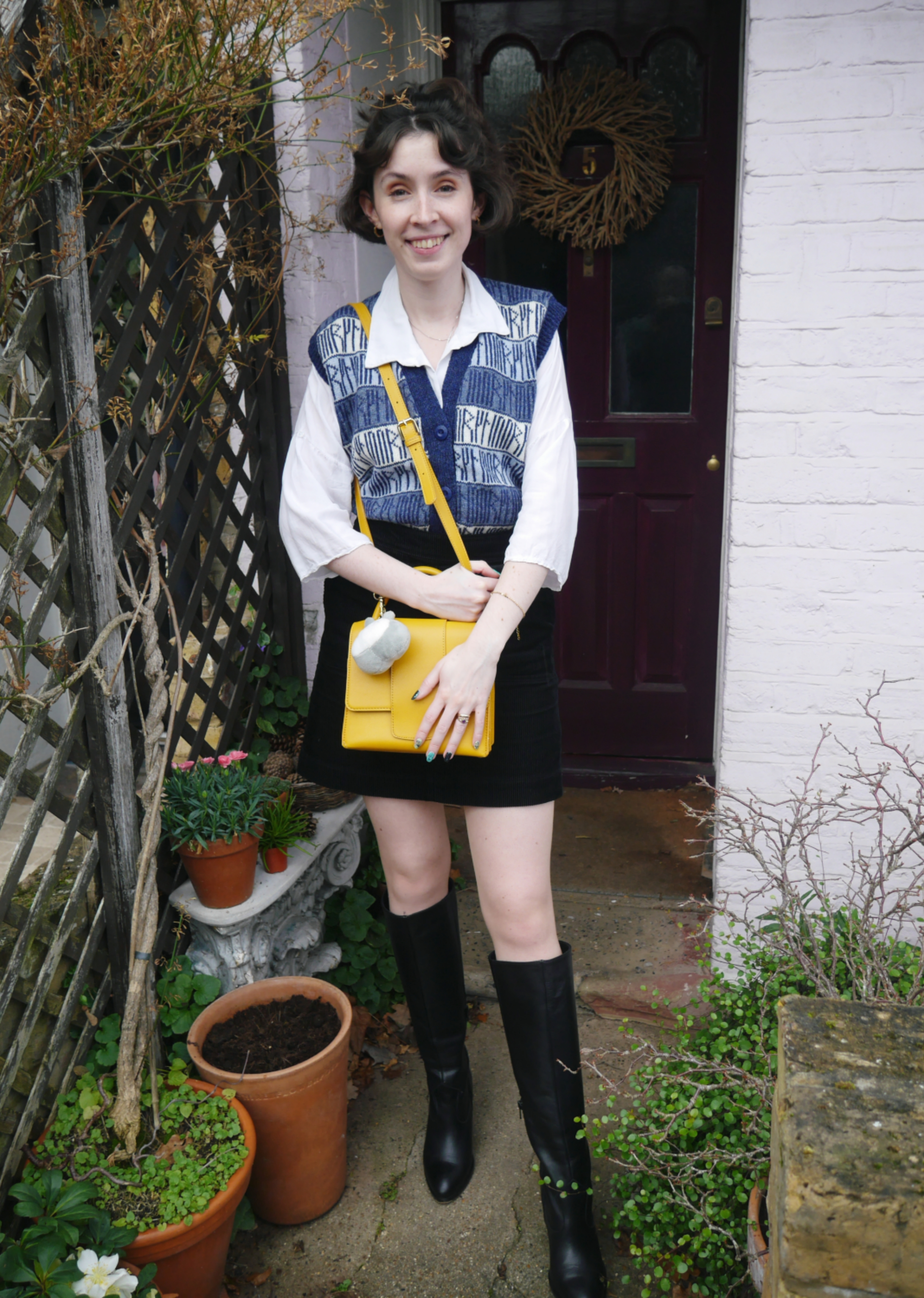 I treated to myself for Christmas a new Judith Glue sweater vest because I bloody love them! This is the perfect preppy look with a little 60’s twist with these boots.