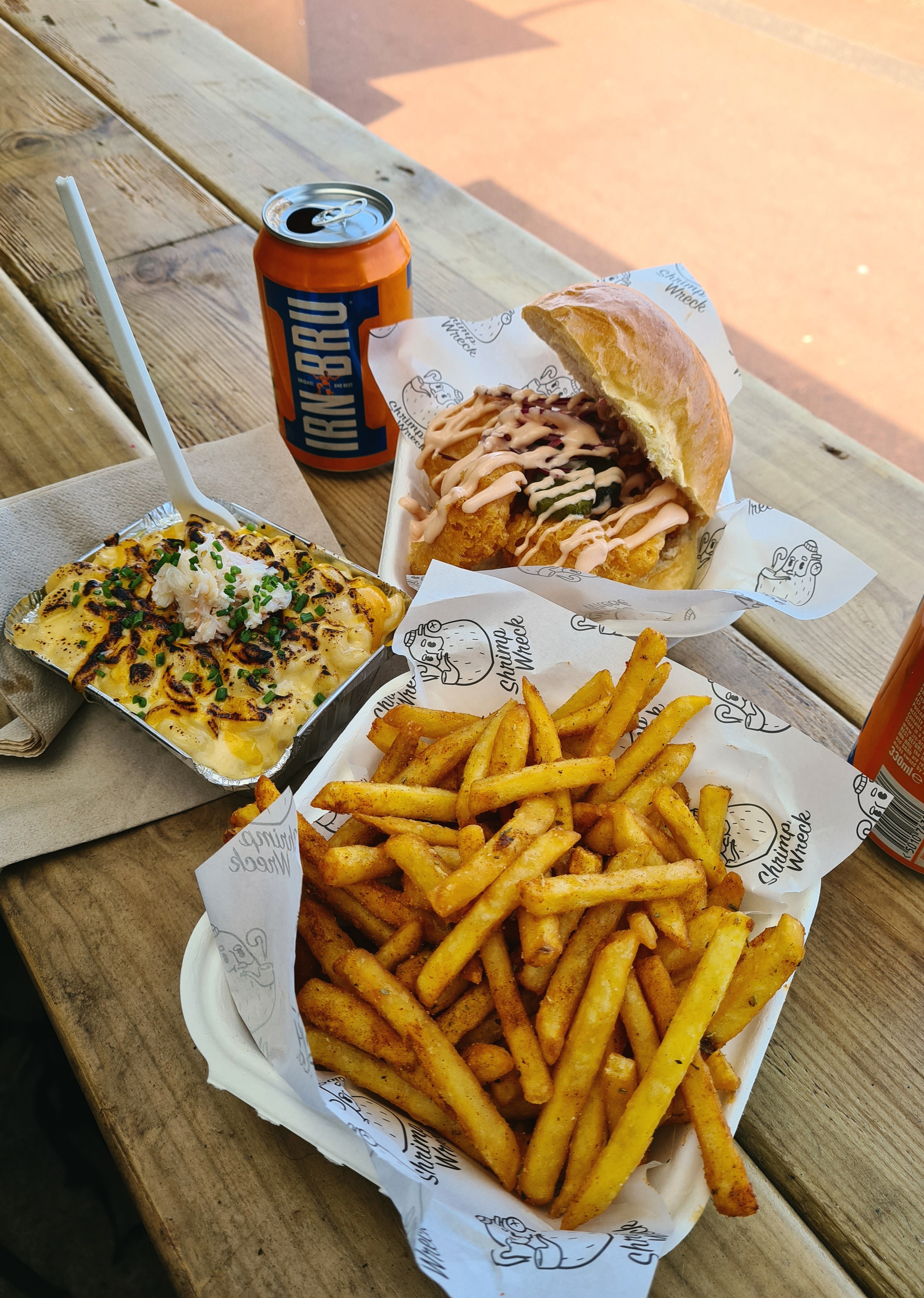 Now when I think of Edinburgh a day at the beach is not the first thing that springs to mind but there are quite a few, I believe you can get a bus out to Portobello beach but again plenty of car parks if you are driving. We pottered along the shoreline, revelling in the sunshine, stopping ever so often to peer at menus of the numerous eateries that line the promenade. We stopped at Shrimp Wreck and dined on Crab Mac ‘n’ Cheese, Shrimp buns and Old Bay Fries paired with my now obsession Irn Bru whilst watching the dogs racing the waves. Actual bliss. Ready for a snooze we drove back to base and lounged for a few hours before cooking up a storm in the little kitchen, packing our bags and hunkering down for the evening.