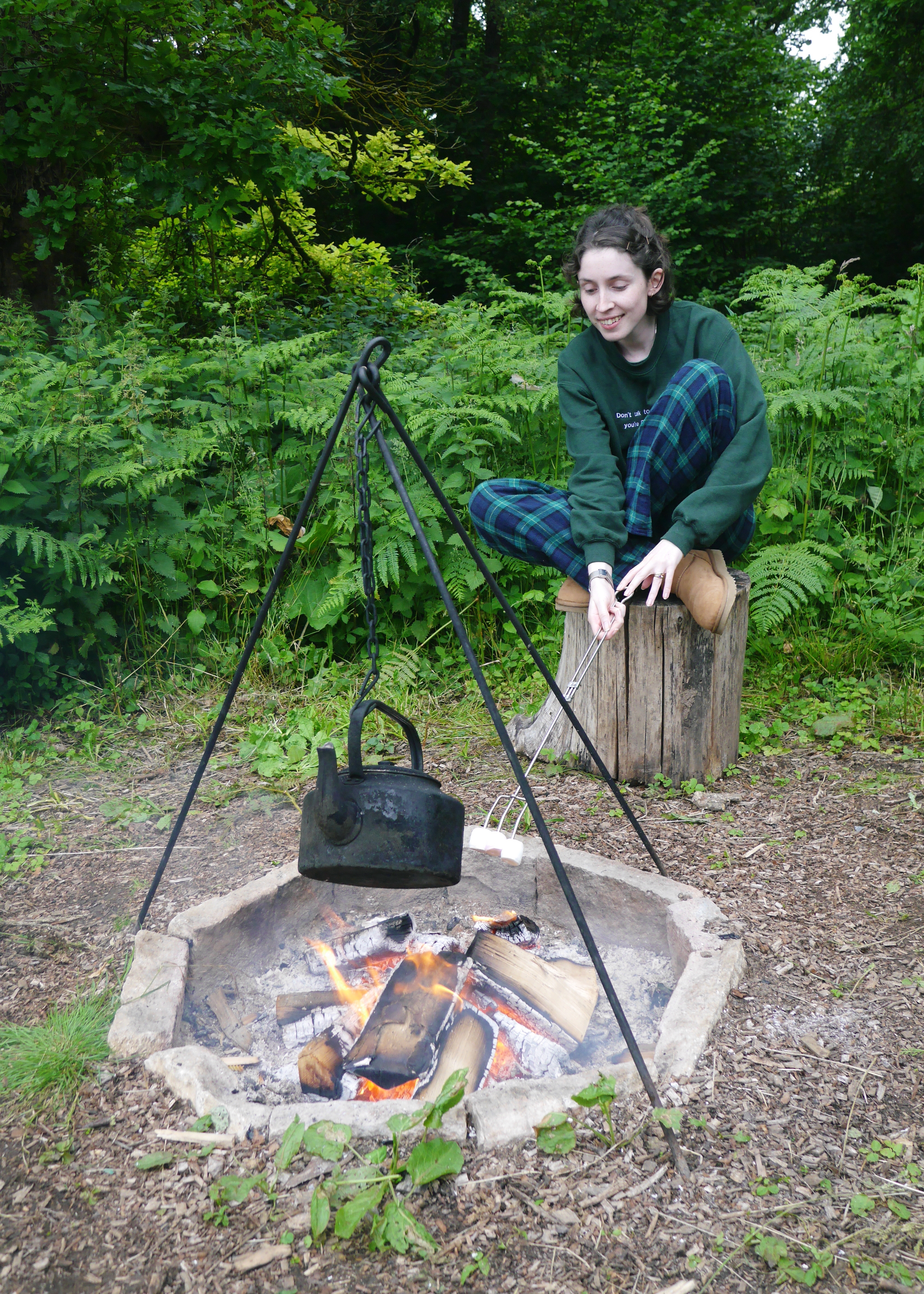 Mum did the honours in the morning of getting the campfire going and the kettle on. We sipped on hot sweet tea and leisurely ate our breakfast; if you are a cooked breakfast fan definitely order one of the breakfast baskets (we did on our last trip and were not disappointed). Alex has a great set of walks all mapped out for you in a handy leaflet and we did two on our full day at Wriggly Tins. The morning was walk no.2 which takes you through woodland and gives you beautiful views of the surrounding countryside. After a long lunch, we headed off on walk no.1 which takes you through Hambledon Vineyard and into the lovely little village of Hambledon where if you wander to almost the edge of the village you’ll reach The old Forge Tearoom which is definitely worth a visit.