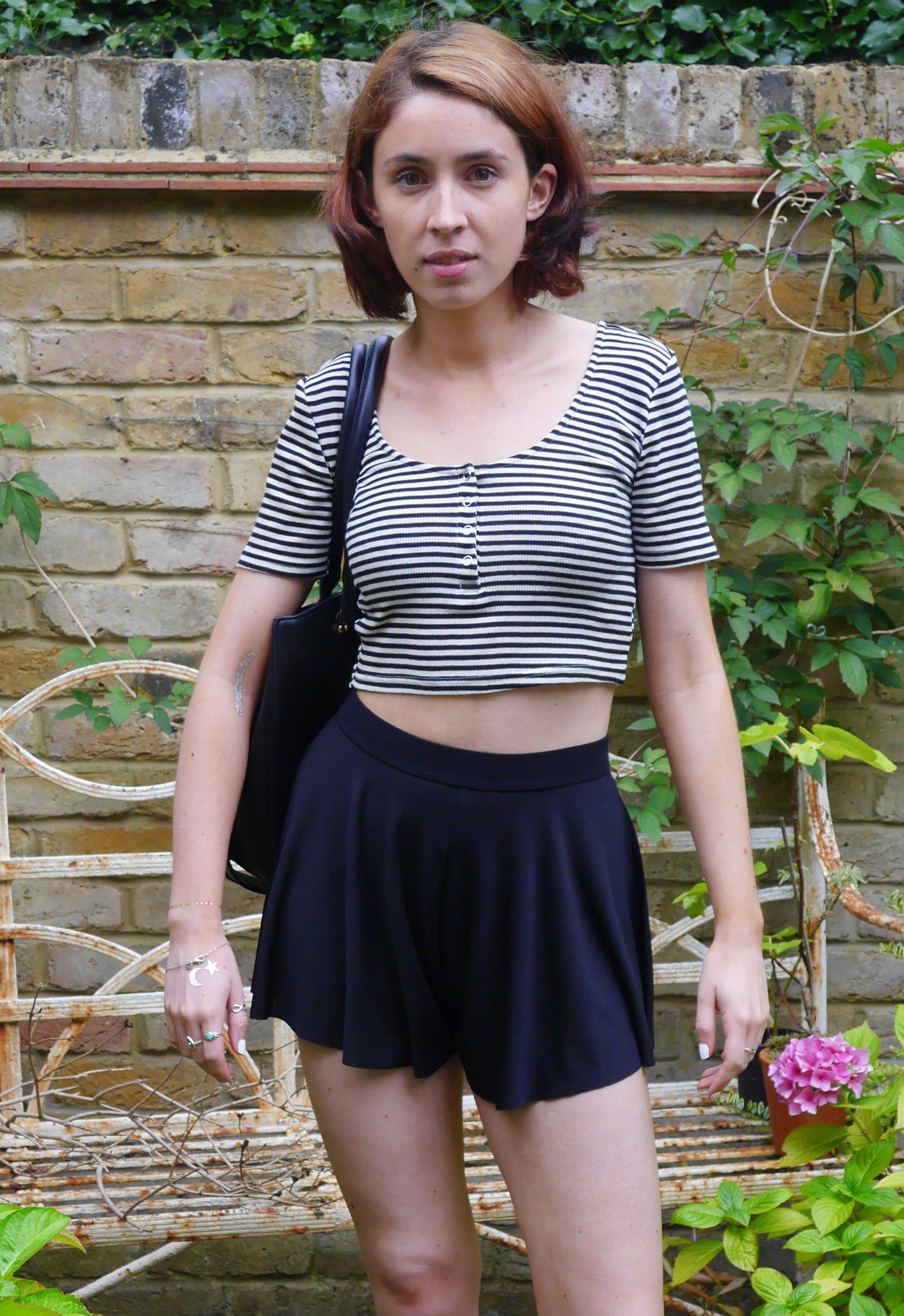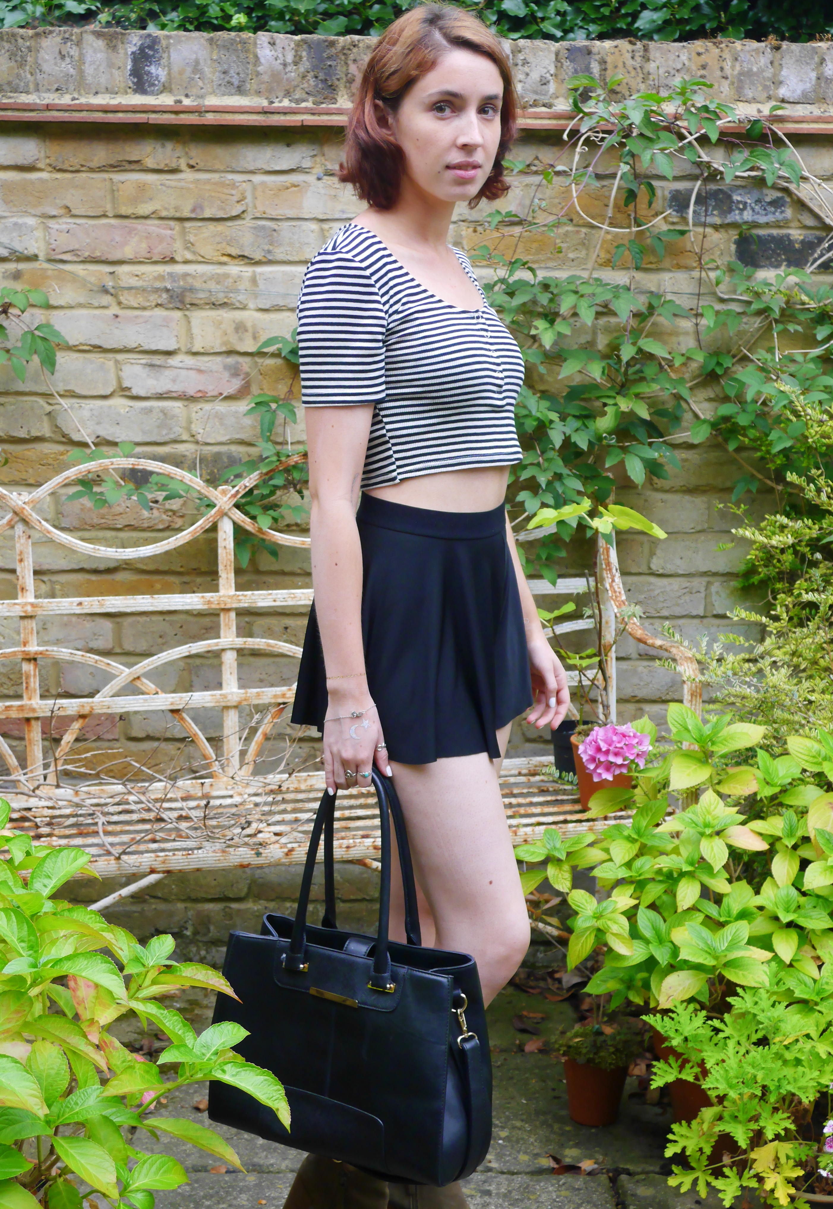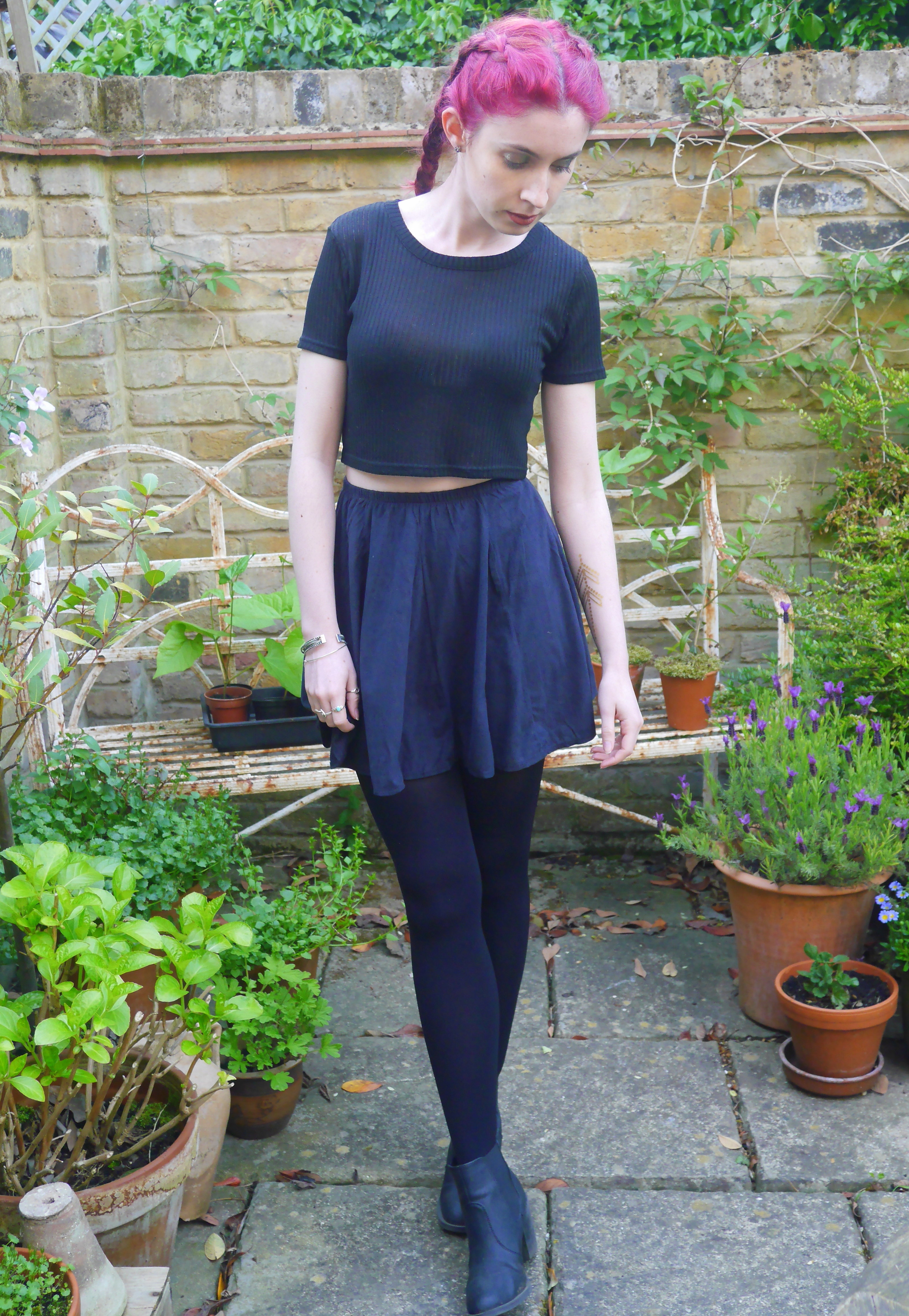 Crop Top – Topshop|Skirt – Brandy Melville (similar)|Tights – Primark|Shoes – H&M|Bag – Jocasi.